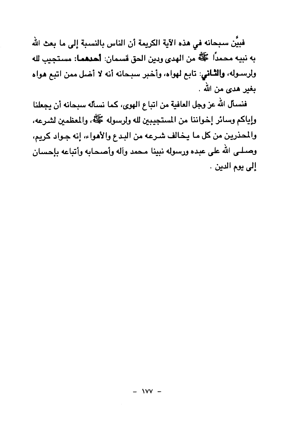 فنسأل الله عز وجل العافية من اتباع الهوى، كما نسأله سبحانه أن يجعلنا وإياكم وسائر إخواننا من المستجيبين لله ولرسوله صلى الله عليه وسلم، والمعظمين لشرعه، والمحذرين من كل ما يخالف شرعه من البدع والأهواء إنه جواد كريم، وصلى الله على عبده ورسوله نبينا محمد وآله وأصحابه وأتباعه بإحسان إلى يوم الدين.