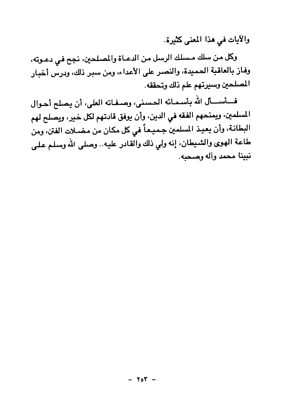 فأسأل الله بأسمائه الحسنى، وصفاته العلى، أن يصلح أحوال المسلمين، ويمنحهم الفقه في الدين، وأن يوفق قادتهم لكل خير، ويصلح لهم البطانة، وأن يعيذ المسلمين جميعا في كل مكان من مضلات الفتن، ومن طاعة الهوى والشيطان، إنه ولي ذلك والقادر عليه.. وصلى الله وسلم على نبينا محمد وآله وصحبه.
