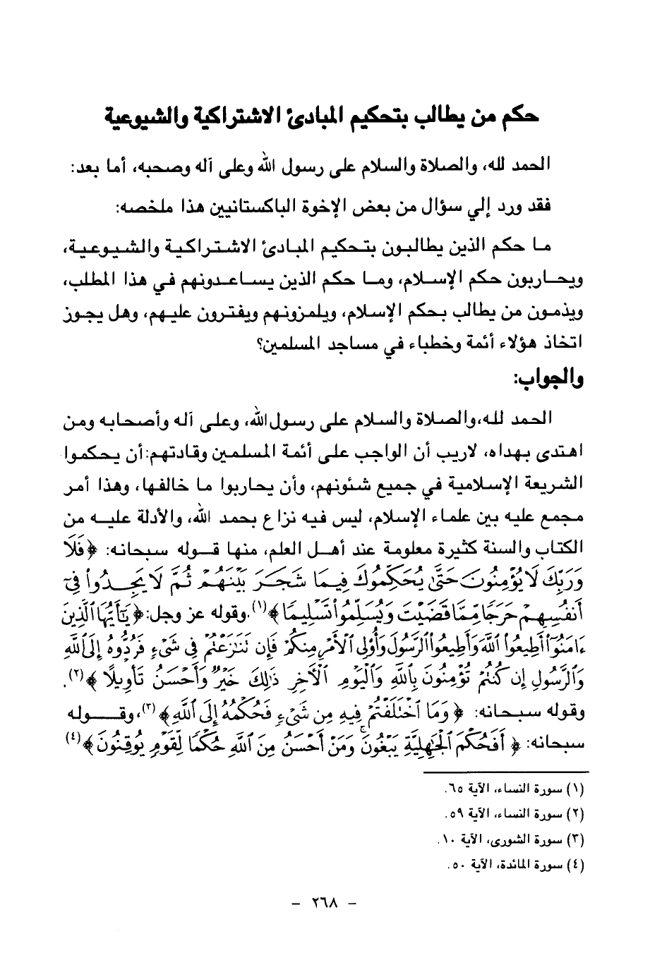 حكم من يطالب بتحكيم المبادئ الاشتراكية والشيوعية