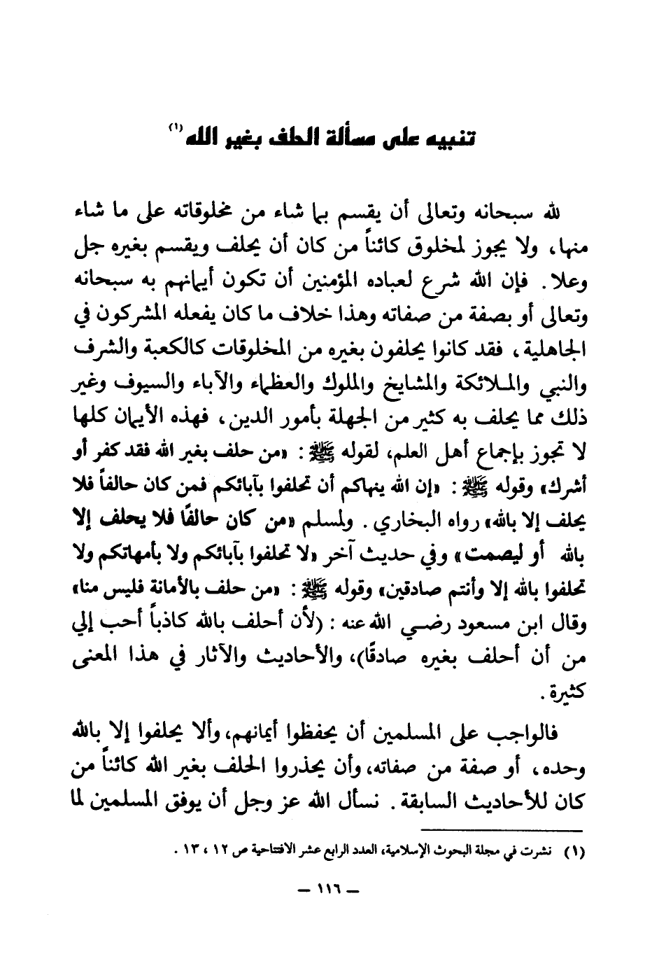 تنبيه على مسألة الحلف بغير الله (¬1)