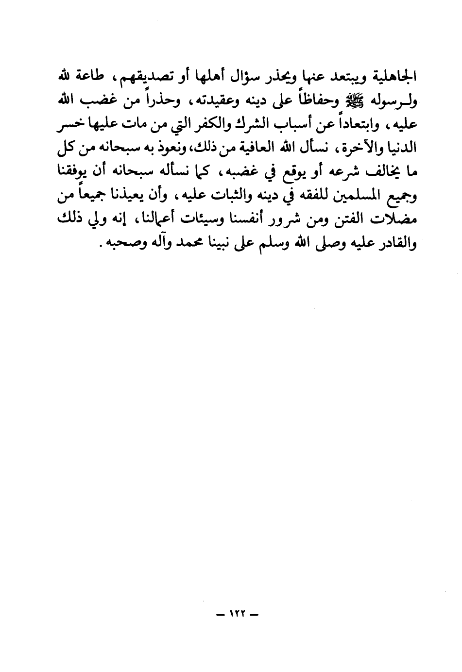 الجاهلية ويبتعد عنها ويحذر سؤال أهلها أو تصديقهم، طاعة لله ولرسوله صلى الله عليه وسلم وحفاظا على دينه وعقيدته، وحذرا من غضب الله عليه، وابتعادا عن أسباب الشرك والكفر التي من مات عليها خسر الدنيا والآخرة، نسأل الله العافية من ذلك، ونعوذ به سبحانه من كل ما يخالف شرعه أو يوقع في غضبه، كما نسأله سبحانه أن يوفقنا وجميع المسلمين للفقه في دينه والثبات عليه، وأن يعيذنا جميعا من مضلات الفتن ومن شرور أنفسنا وسيئات أعمالنا، إنه ولي ذلك والقادر عليه وصلى الله وسلم على نبينا محمد وآله وصحبه.