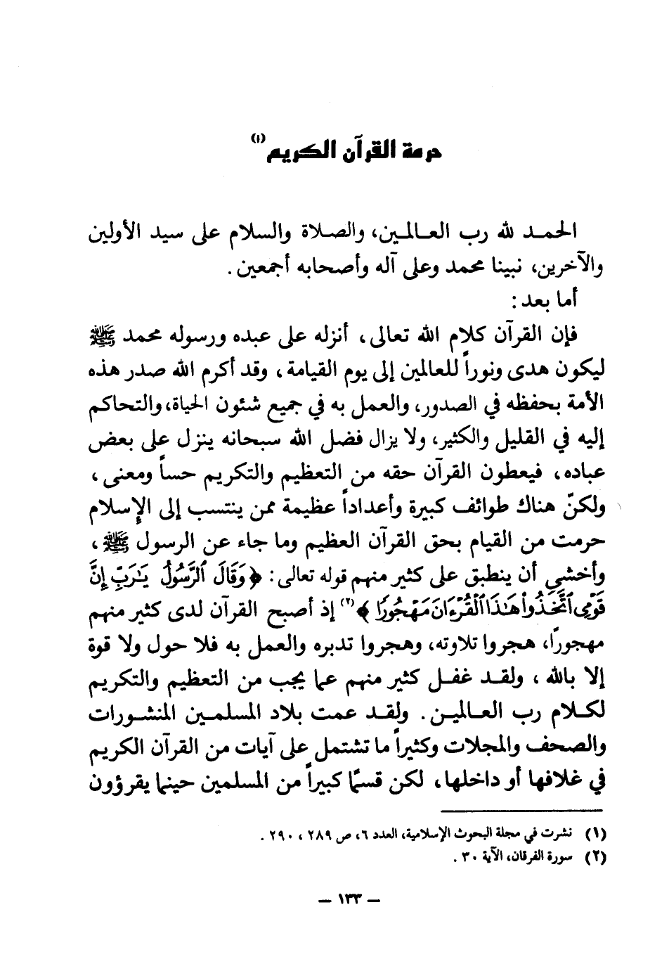 حرمة القرآن الكريم (¬1)