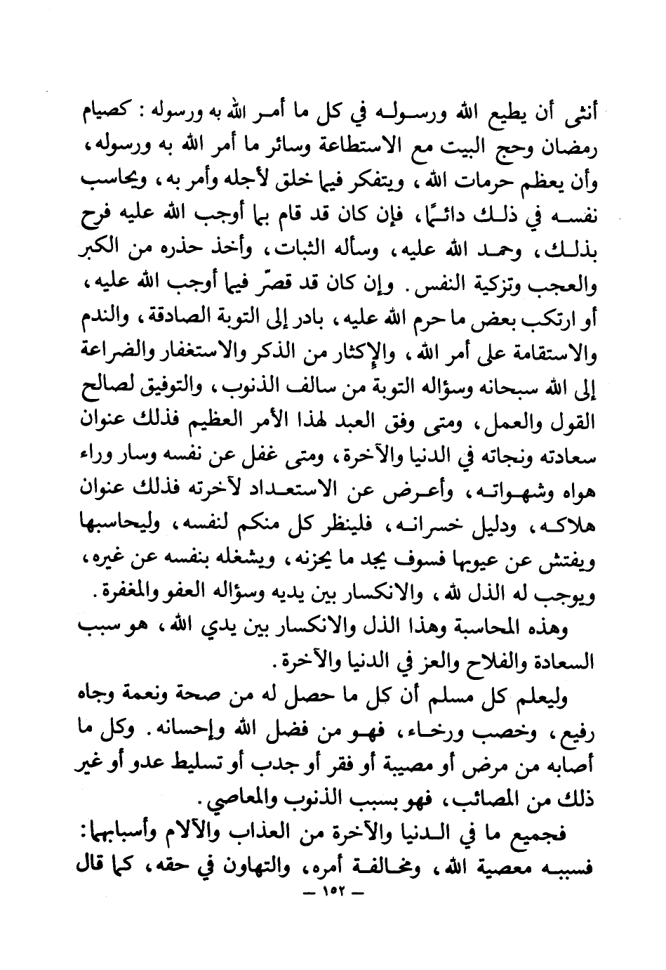 وليعلم كل مسلم أن كل ما حصل له من صحة ونعمة وجاه رفيع، وخصب ورخاء، فهو من فضل الله وإحسانه. وكل ما أصابه من مرض أو مصيبة أو فقر أو جدب أو تسليط عدو أو غير ذلك من المصائب، فهو بسبب الذنوب والمعاصي.