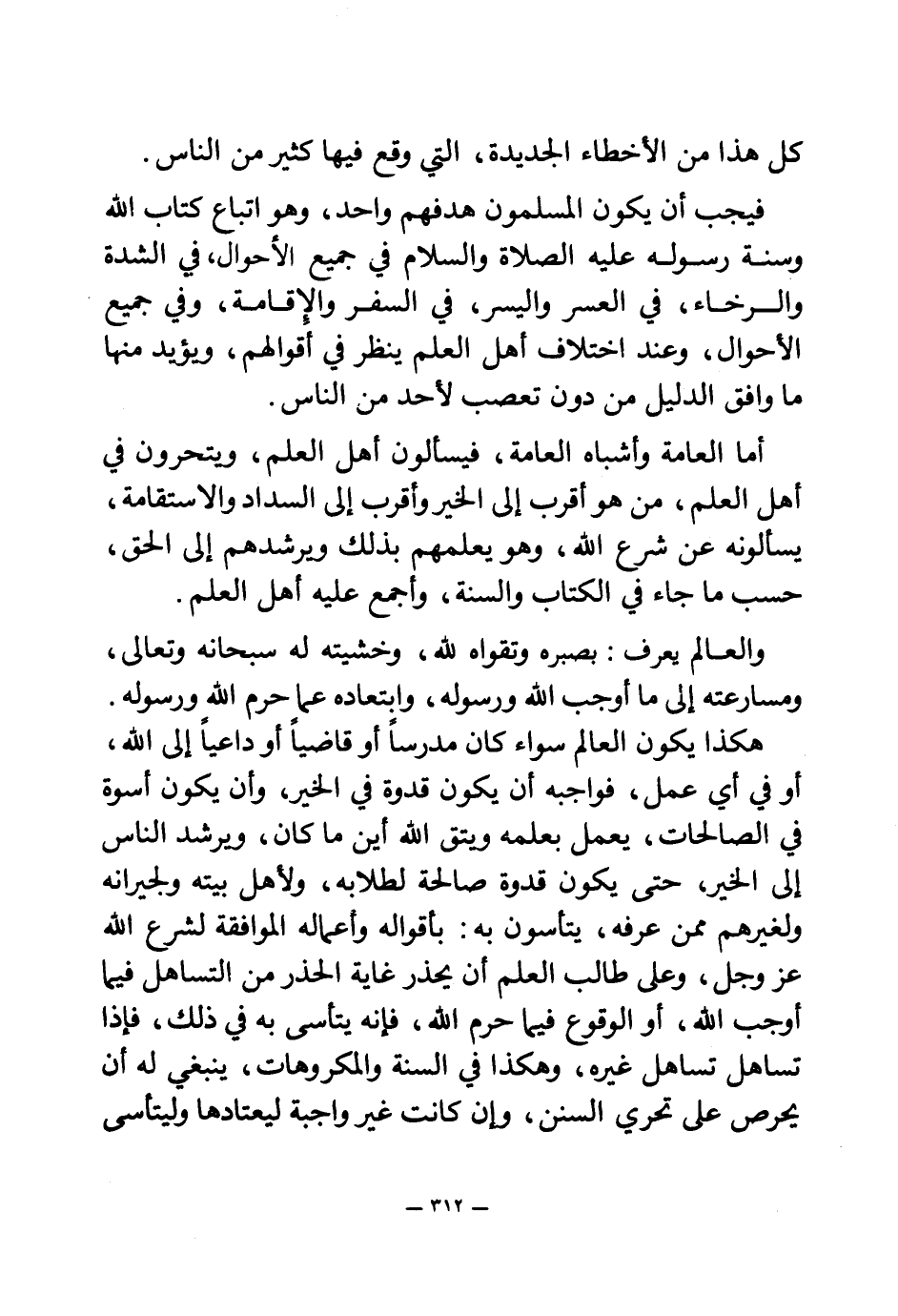 فيجب أن يكون المسلمون هدفهم واحد، وهو اتباع كتاب الله وسنة رسوله - عليه الصلاة والسلام - في جميع الأحوال، في الشدة والرخاء، في العسر واليسر، في السفر والإقامة، وفي جميع الأحوال، وعند اختلاف أهل العلم ينطر في أقوالهم، ويؤيد منها ما وافق الدليل من دون تعصب لأحد من الناس.