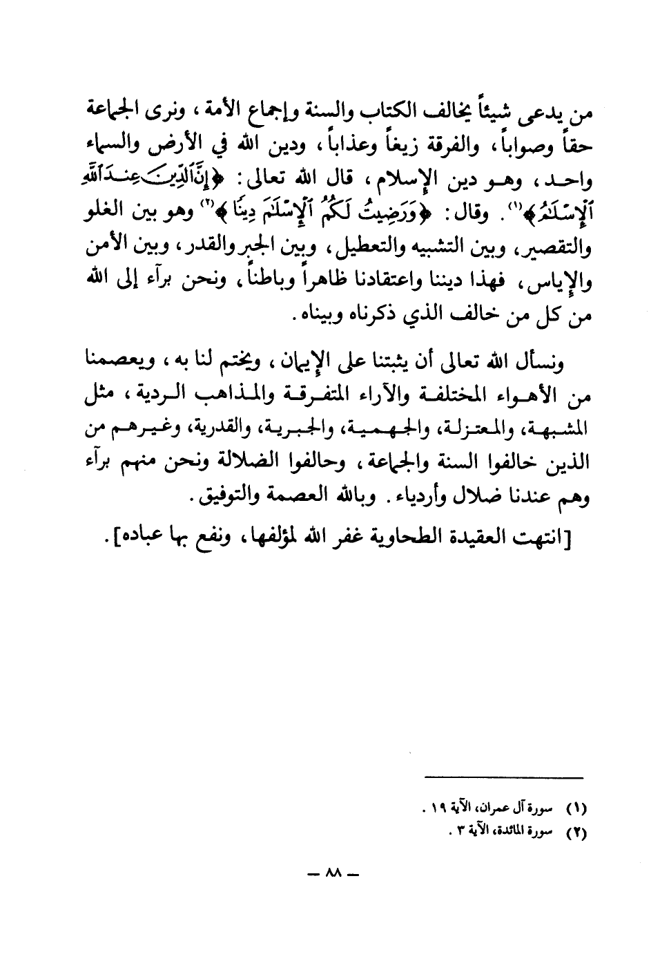 [انتهت العقيدة الطحاوية غفر الله لمؤلفها، ونفع بها عباده] .