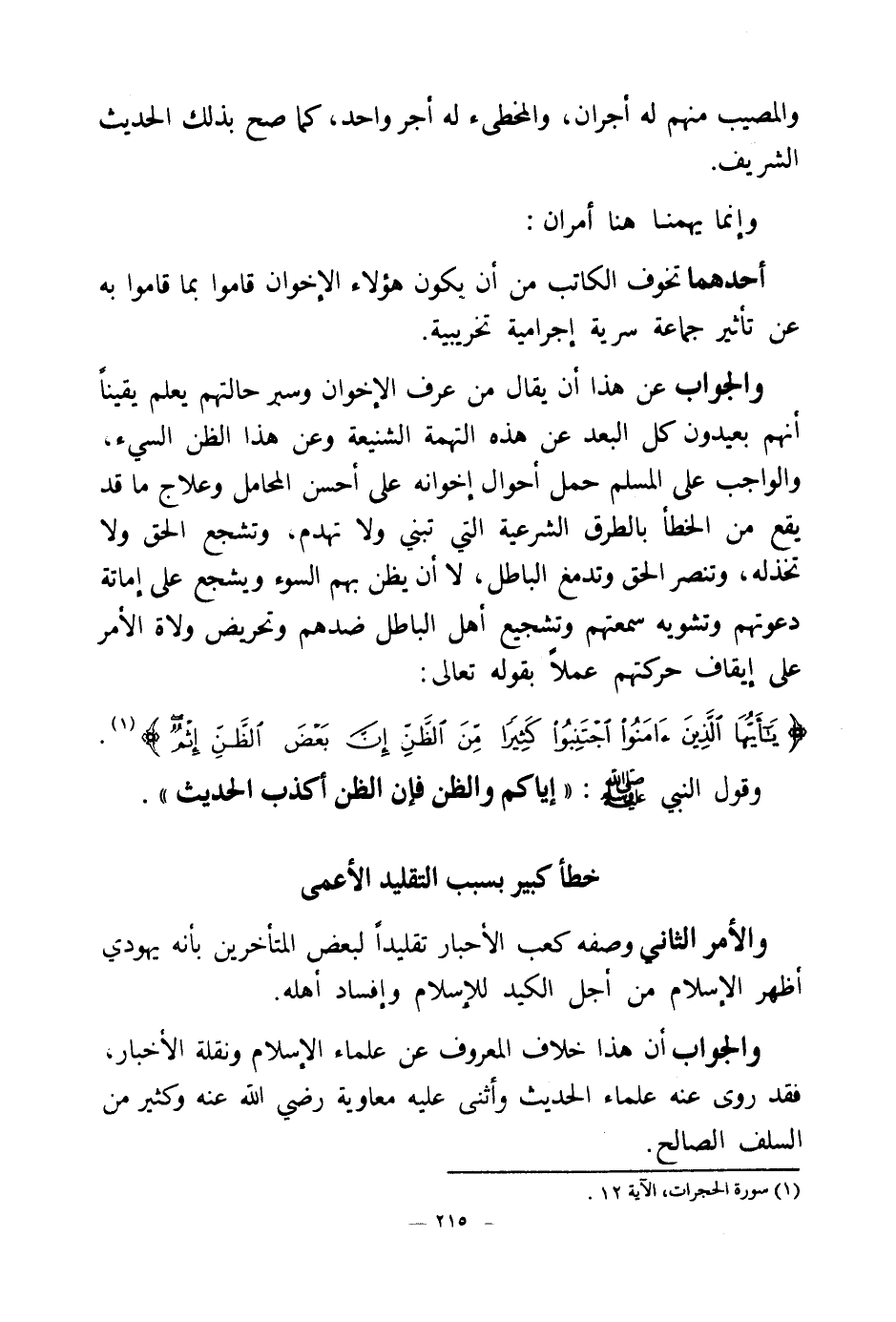 {يَا أَيُّهَا الَّذِينَ آمَنُوا اجْتَنِبُوا كَثِيرًا مِنَ الظَّنِّ إِنَّ بَعْضَ الظَّنِّ إِثْمٌ} (¬1) وقال النبي صلى الله عليه وسلم: «إياكم والظن فإن الظن أكذب الحديث (¬2) » .