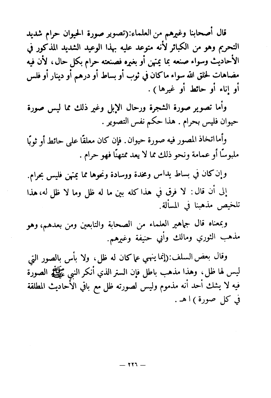 قال أصحابنا وغيرهم من العلماء: تصوير صورة الحيوان حرام شديد التحريم وهو من الكبائر لأنه متوعد عليه بهذا الوعيد الشديد المذكور في الأحاديث وسواء صنعه بما يمتهن أو بغيره فصنعته حرام بكل حال؛ لأن فيه مضاهات لخلق الله سواء ما كان في ثوب أو بساط أو درهم أو دينار أو فلس أو إناء أو حائط أو غيرها.