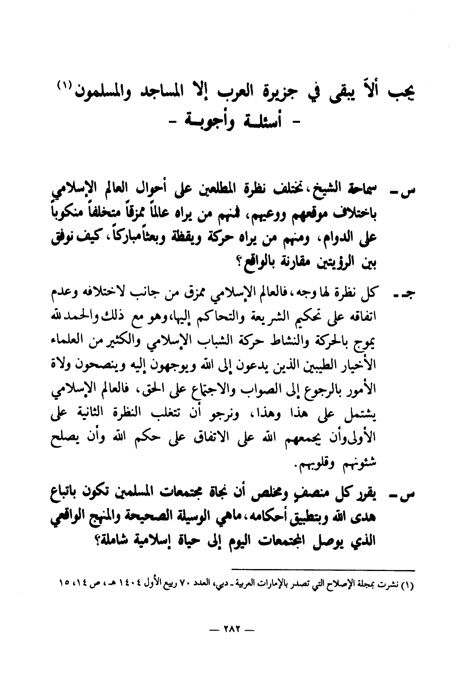 (¬1) نشرت بمجلة الإصلاح التي تصدر بالإمارات العربية - دبي، العدد 70 ربيع الأول 1404 هـ، صـ 14، 15