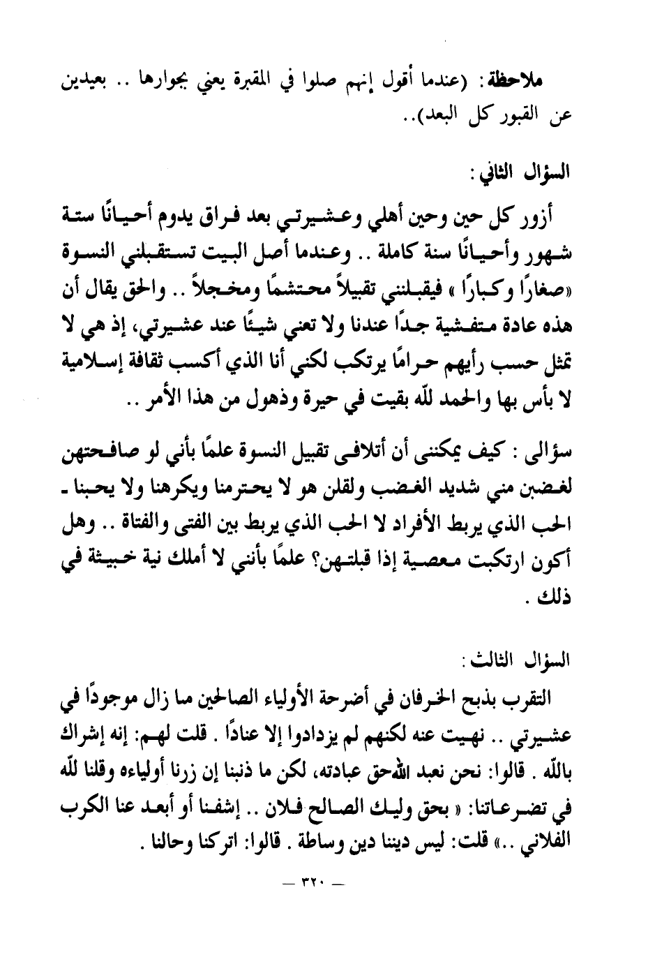 التقرب بذبح الخرفان في أضرحة الأولياء الصالحين ما زال موجودا في عشيرتي. نهيت عنه لكنهم لم يزدادوا إلا عنادا. قلت لهم: إنه إشراك بالله. قالوا: نحن نعبد الله حق عبادته، لكن ما ذنبنا إن زرنا أولياءه وقلنا لله في تضرعاتنا: " بحق وليك الصالح فلان.. إشفنا أو أبعد عنا الكرب الفلاني. " قلت: ليس ديننا دين وساطة. قالوا: اتركنا وحالنا.