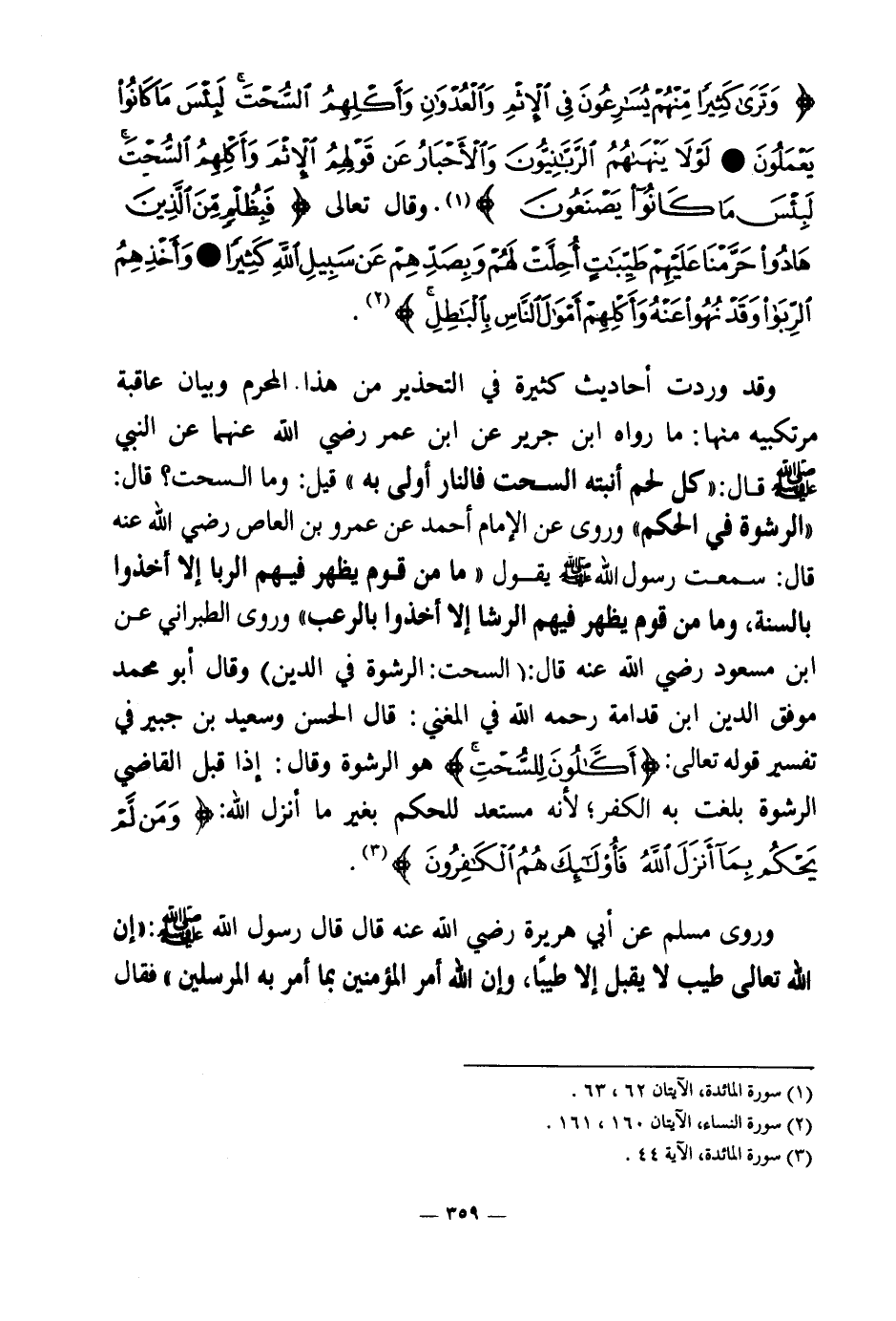 {وَتَرَى كَثِيرًا مِنْهُمْ يُسَارِعُونَ فِي الْإِثْمِ وَالْعُدْوَانِ وَأَكْلِهِمُ السُّحْتَ لَبِئْسَ مَا كَانُوا يَعْمَلُونَ} (¬1) {لَوْلَا يَنْهَاهُمُ الرَّبَّانِيُّونَ وَالْأَحْبَارُ عَنْ قَوْلِهِمُ الْإِثْمَ وَأَكْلِهِمُ السُّحْتَ لَبِئْسَ مَا كَانُوا يَصْنَعُونَ} (¬2)