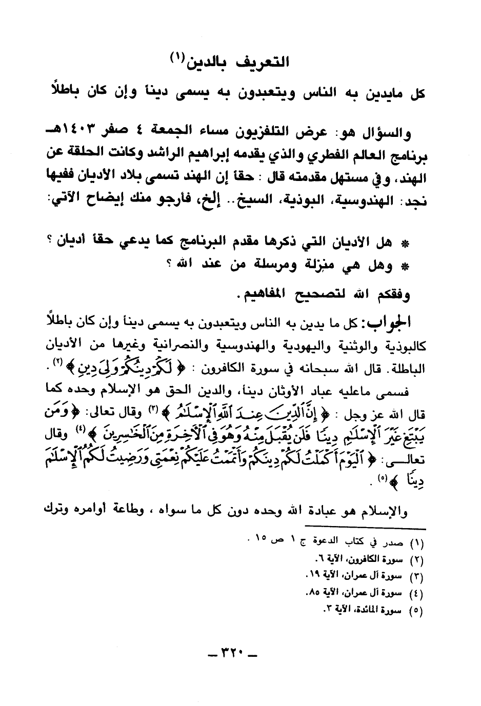 والسؤال هو: عرض التلفزيون مساء الجمعة 4 صفر 1403 هـ برنامج العالم الفطري والذي يقدمه إبراهيم الراشد وكانت الحلقة عن الهند، وفي مستهل مقدمته قال: حقا إن الهند تسمى بلاد الأديان ففيها نجد: الهندوسية، البوذية، السيخ ... إلخ، فأرجو منك إيضاح الآتي: