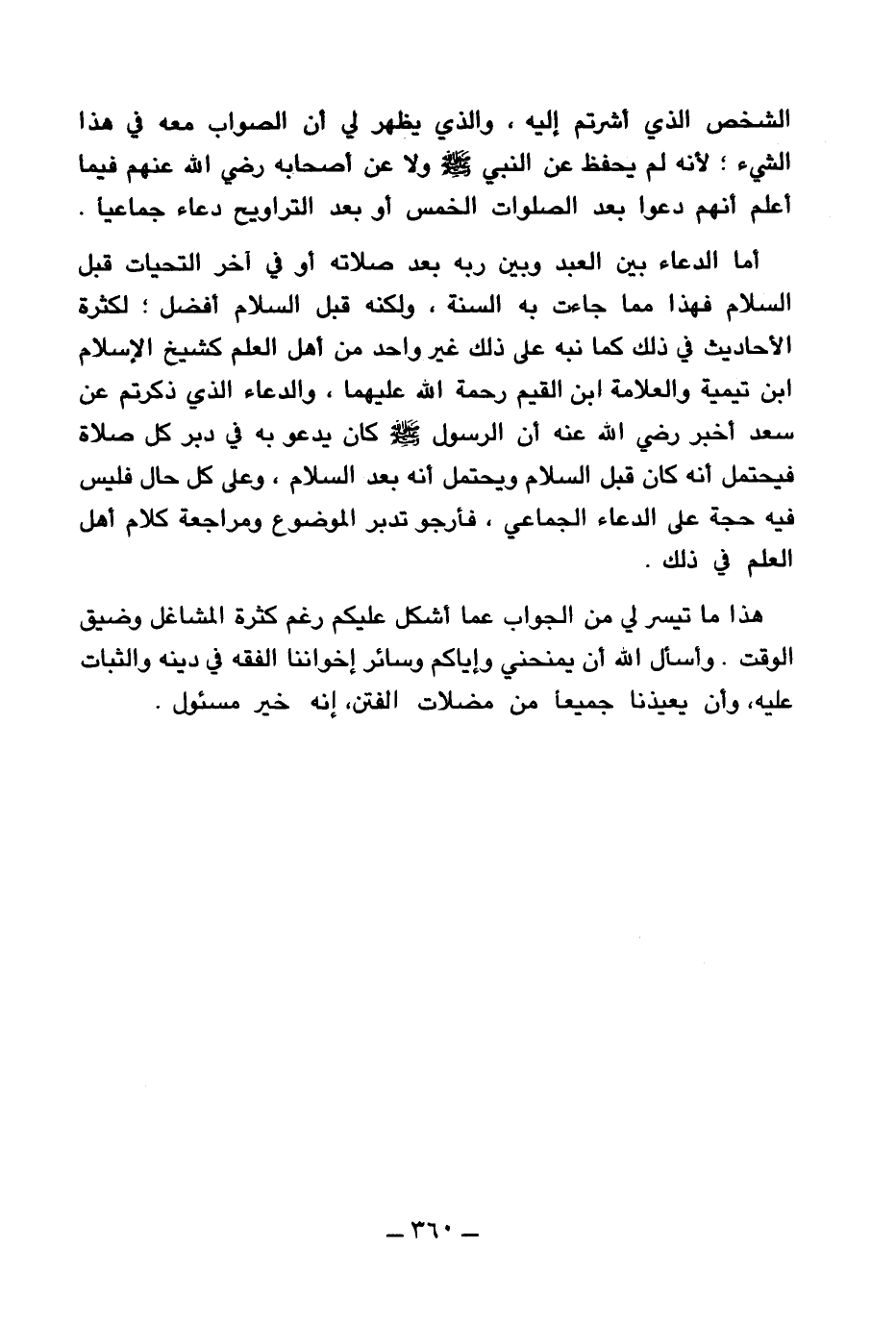 هذا ما تيسر لي من الجواب عما أشكل عليكم رغم كثرة المشاغل وضيق الوقت. وأسأل الله أن يمنحني وإياكم وسائر إخواننا الفقه في دينه والثبات عليه، وأن يعيذنا جميعا من مضلات الفتن، إنه خير مسئول.
