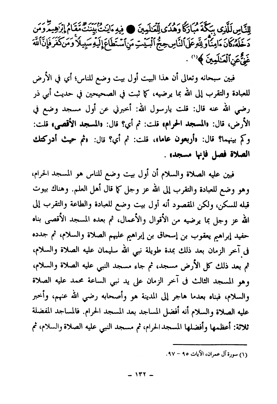 {قُلْ صَدَقَ اللَّهُ فَاتَّبِعُوا مِلَّةَ إِبْرَاهِيمَ حَنِيفًا وَمَا كَانَ مِنَ الْمُشْرِكِينَ} (¬1) {إِنَّ أَوَّلَ بَيْتٍ وُضِعَ لِلنَّاسِ لَلَّذِي بِبَكَّةَ مُبَارَكًا وَهُدًى لِلْعَالَمِينَ} (¬2) {فِيهِ آيَاتٌ بَيِّنَاتٌ مَقَامُ إِبْرَاهِيمَ وَمَنْ دَخَلَهُ كَانَ آمِنًا وَلِلَّهِ عَلَى النَّاسِ حِجُّ الْبَيْتِ مَنِ اسْتَطَاعَ إِلَيْهِ سَبِيلًا وَمَنْ كَفَرَ فَإِنَّ اللَّهَ غَنِيٌّ عَنِ الْعَالَمِينَ} (¬3)