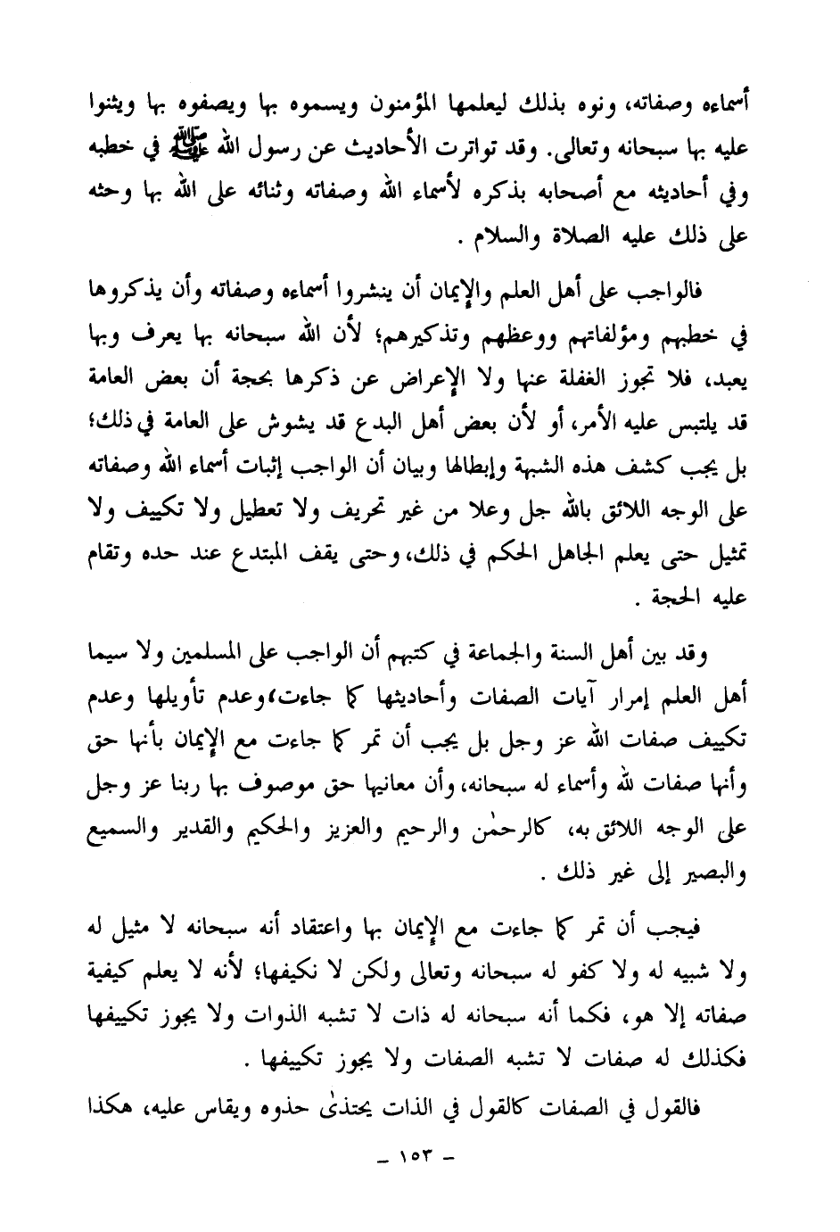 فالواجب على أهل العلم والإيمان أن ينشروا أسماءه وصفاته وأن يذكروها في خطبهم ومؤلفاتهم ووعظهم وتذكيرهم؛ لأن الله سبحانه بها يعرف وبها يعبد، فلا تجوز الغفلة عنها ولا الإعراض عن ذكرها بحجة أن بعض العامة قد يلتبس عليه الأمر أو لأن بعض أهل البدع قد يشوش على العامة في ذلك، بل يجب كشف هذه الشبهة وإبطالها وبيان أن الواجب إثبات أسماء الله وصفاته على الوجه اللائق بالله جل وعلا من غير تحريف ولا تعطيل ولا تكييف ولا تمثيل حتى يعلم الجاهل الحكم في ذلك وحتى يقف المبتدع عند حده وتقام عليه الحجة.