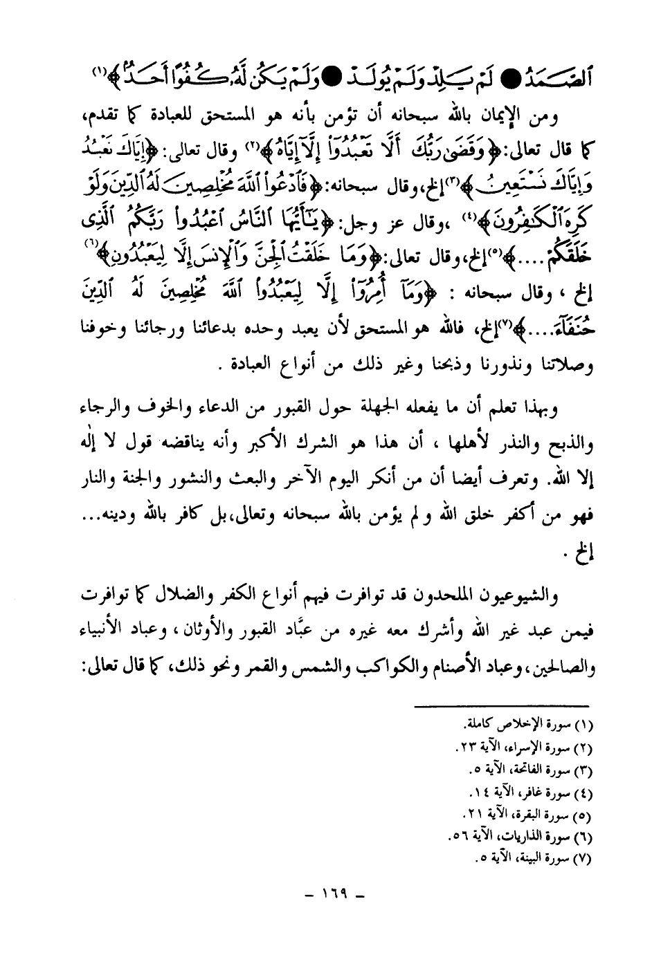 {قُلْ هُوَ اللَّهُ أَحَدٌ} (¬1) {اللَّهُ الصَّمَدُ} (¬2) {لَمْ يَلِدْ وَلَمْ يُولَدْ} (¬3) {وَلَمْ يَكُنْ لَهُ كُفُوًا أَحَدٌ} (¬4)