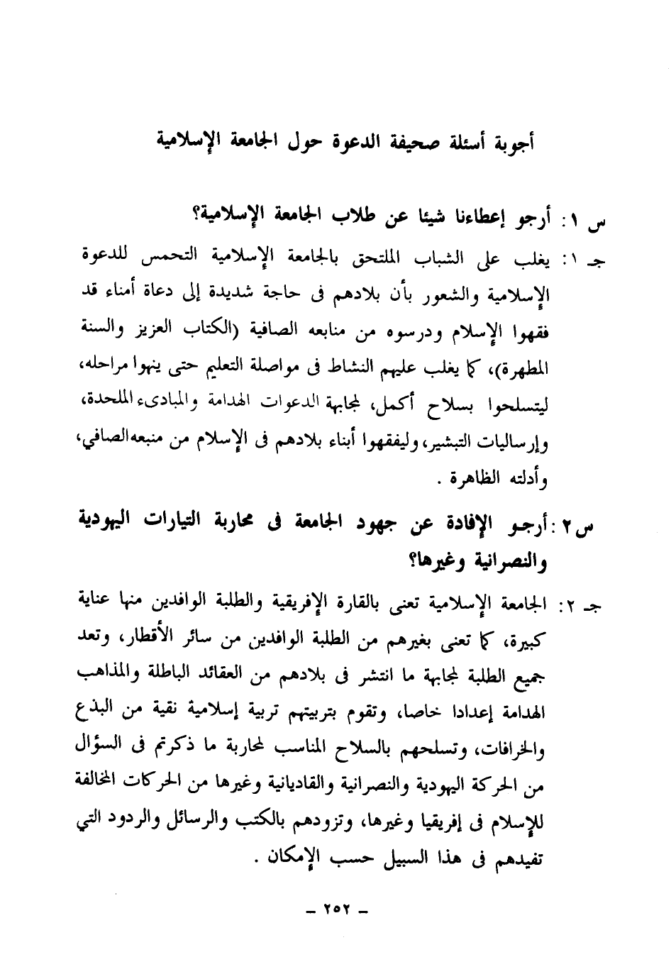أجوبة أسئلة صحيفة الدعوة حول الجامعة الإسلامية