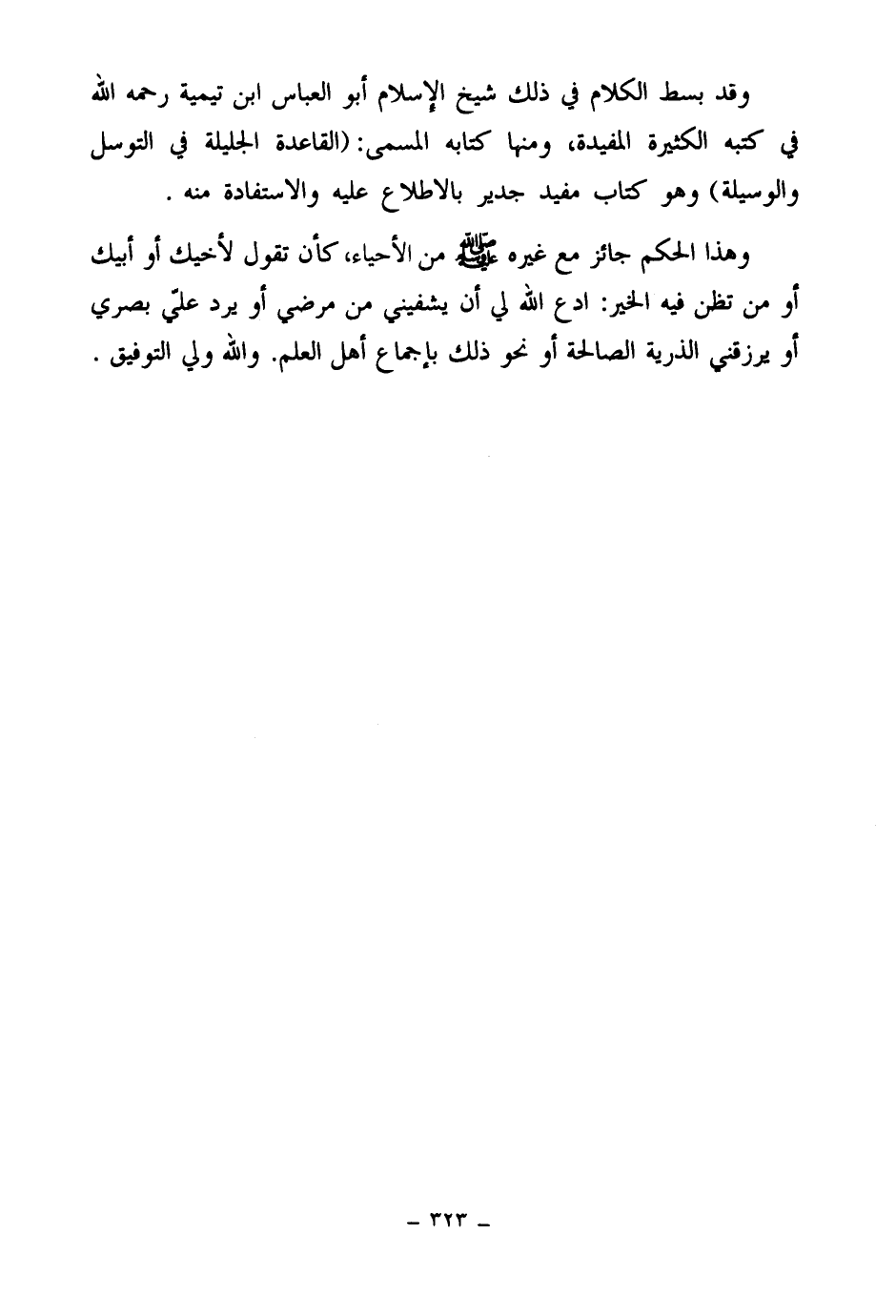 وقد بسط الكلام في ذلك شيخ الإسلام أبو العباس ابن تيمية - رحمه الله - في كتبه الكثيرة المفيدة، ومنها كتابه المسمى: القاعدة الجليلة في التوسل والوسيلة، وهو كتاب مفيد جدير بالاطلاع عليه والاستفادة منه.