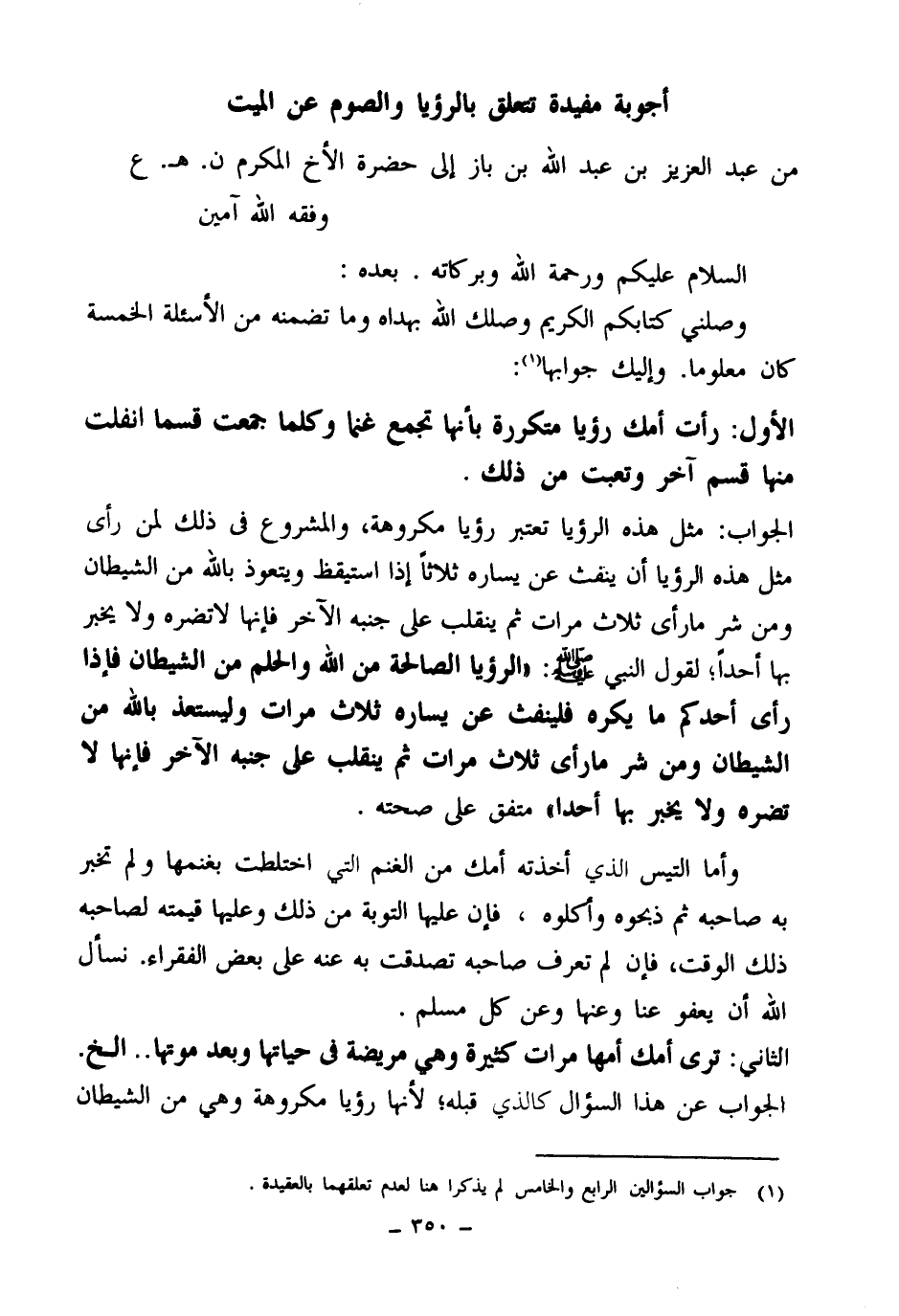 أجوبة مفيدة تتعلق بالرؤيا والصوم عن الميت.