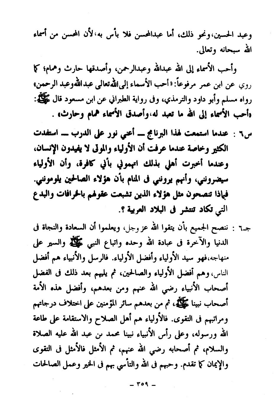 جـ6: ننصح الجميع بأن يتقوا الله - عز وجل - ويعلموا أن السعادة والنجاة في الدنيا والآخرة في عبادة الله وحده، واتباع النبي صلى الله عليه وسلم، والسير على منهاجه فهو سيد الأولياء وأفضل الأولياء. فالرسل والأنبياء هم أفضل الناس، وهم أفضل الأولياء والصالحين، ثم يليهم بعد ذلك في الفضل أصحاب الأنبياء رضي الله عنهم ومن بعدهم، وأفضل هذه الأمة أصحاب نبينا صلى الله عليه وسلم، ثم من بعدهم سائر المؤمنين على اختلاف درجاتهم ومراتهم في التقوى.