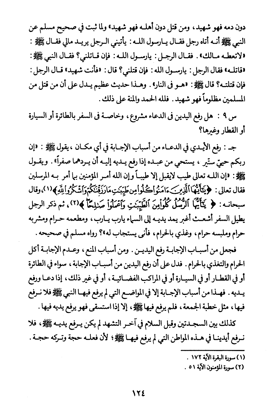 س 9: هل رفع اليدين في الدعاء مشروع، وخاصة في السفر بالطائرة أو السيارة أو القطار وغيرهما؟