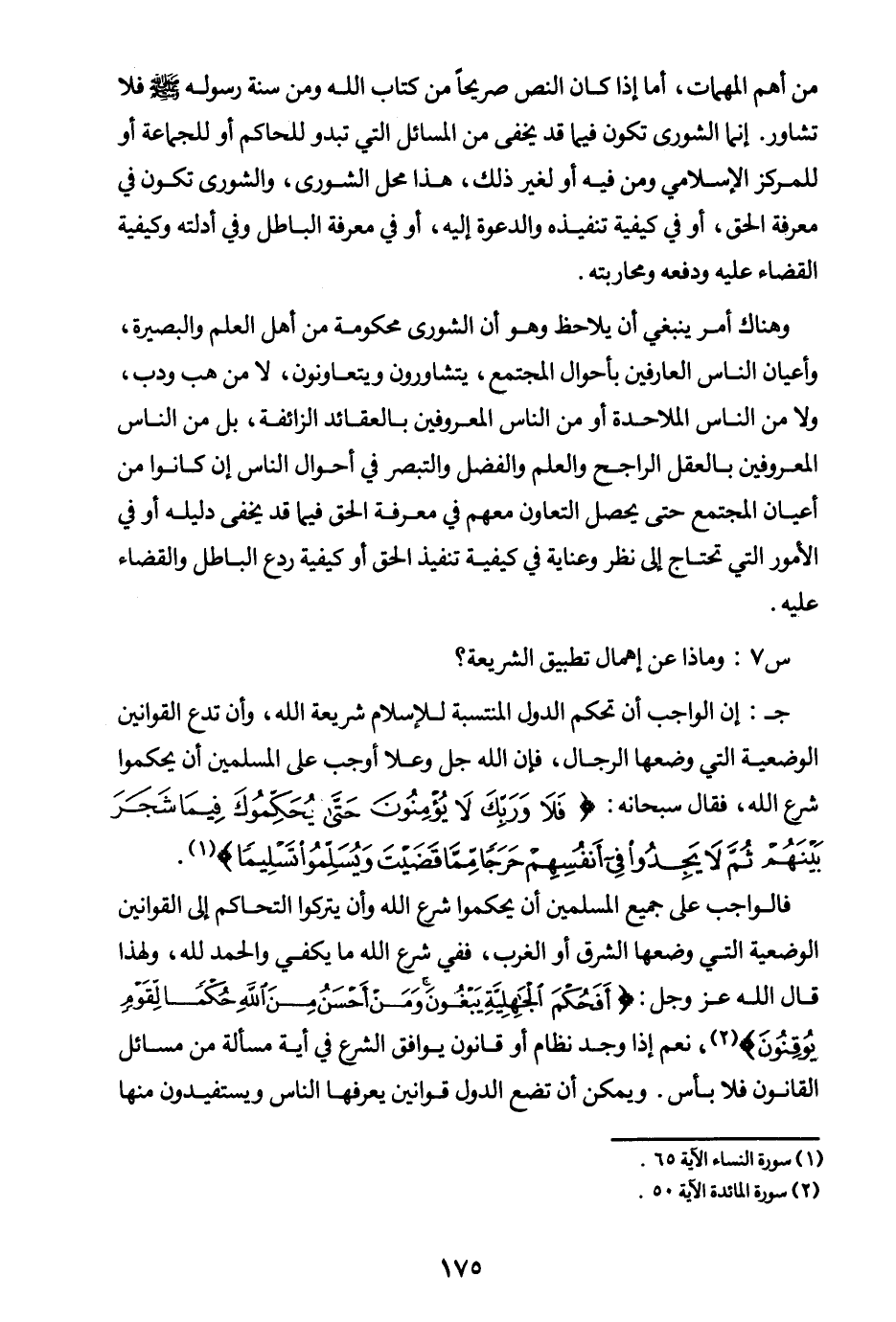 س 7: وماذا عن إهمال تطبيق الشريعة؟