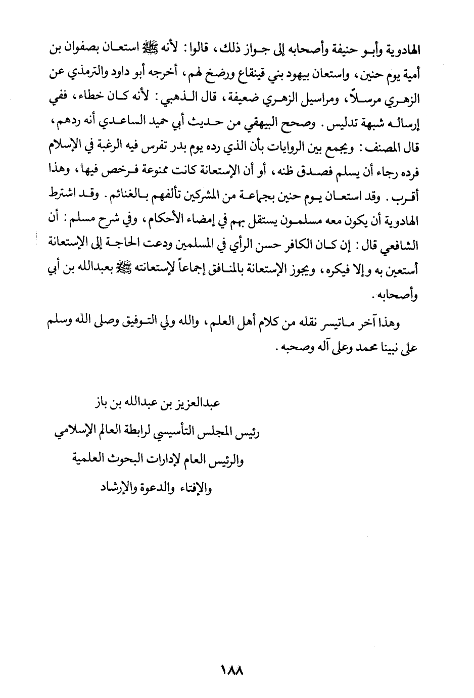 وهذا آخر ما تيسر نقله من كلام أهل العلم، والله ولي التوفيق، وصلى الله وسلم على نبينا محمد وعلى آله وصحبه. عبد العزيز بن عبد الله بن باز