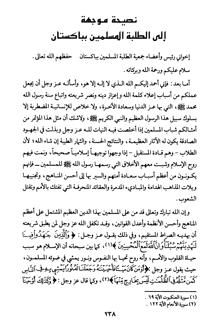 إخواني؛ رئيس وأعضاء جمعية الطلبة المسلمين بباكستان حفظهم الله تعالى. سلام عليكم ورحمة الله وبركاته.