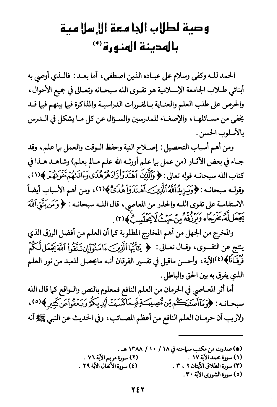 وصية لطلاب الجامعة الإسلامية بالمدينة المنورة (¬1)