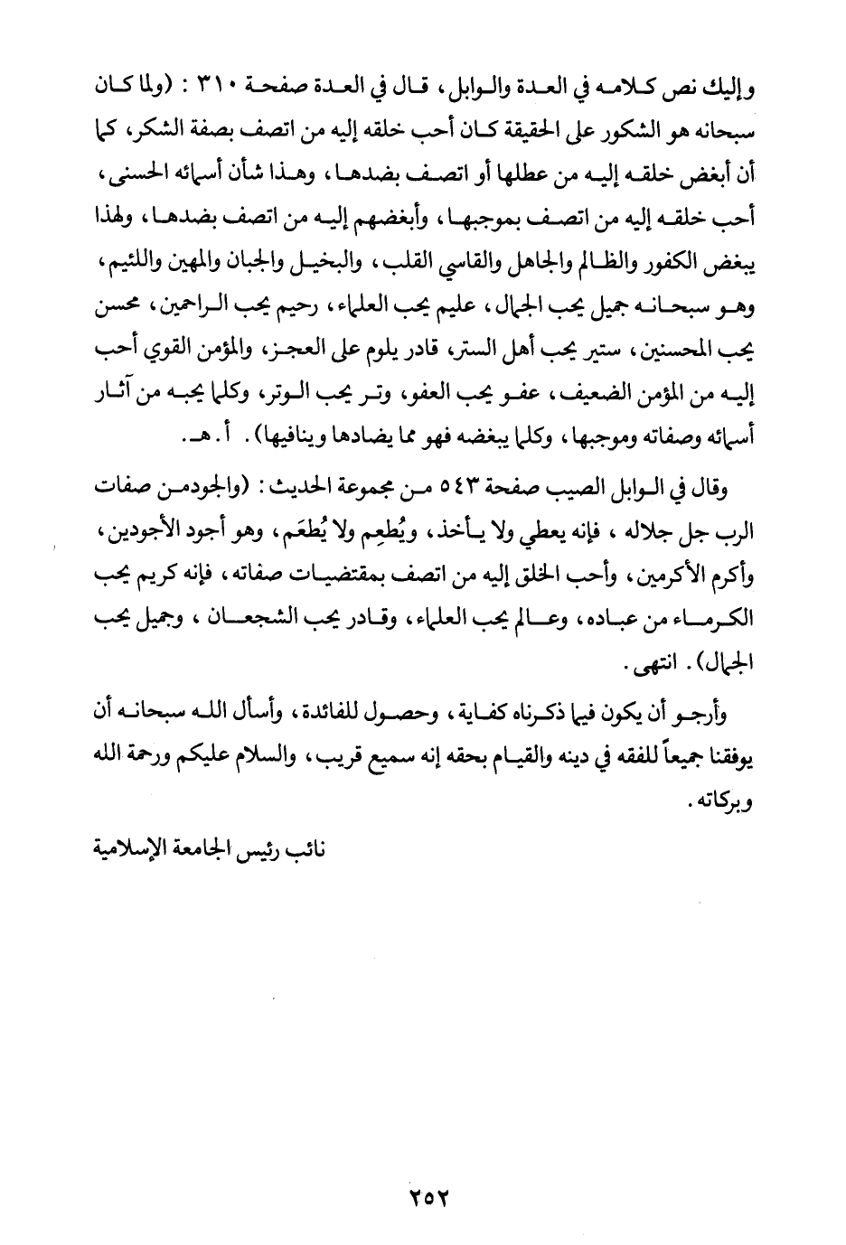 قال في العدة صفحة 310: ولما كان سبحانه هو الشكور على الحقيقة كان أحب خلقه إليه من اتصف بصفة الشكر، كما أن أبغض خلقه إليه من عطلها أو اتصف بضدها، وهذا شأن أسمائه الحسنى، أحب خلقه إليه من اتصف بموجبها، وأبغضهم إليه من اتصف بضدها، ولهذا يبغض الكفور والظالم والجاهل والقاسي القلب، والبخيل والجبان والمهين واللئيم، وهو سبحانه جميل يحب الجمال، عليم يحب العلماء، رحيم يحب الراحمين، محسن يحب المحسنين، ستير يحب أهل الستر، قادر يلوم على العجز، والمؤمن القوي أحب إليه من المؤمن الضعيف، عفو يحب العفو، وتر يحب الوتر، وكل ما يحبه من آثار أسمائه وصفاته وموجبها، وكل ما يبغضه فهو مما يضادها وينافيها) ا. هـ.