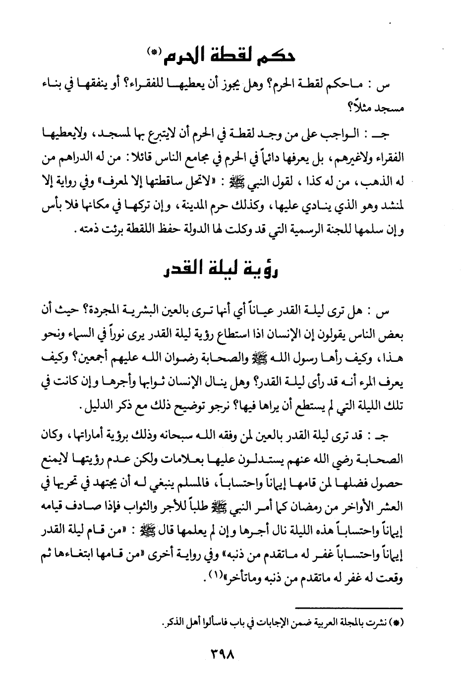 (¬1) نشرت بالمجلة العربية ضمن الإجابات في باب: فاسألوا أهل الذكر.