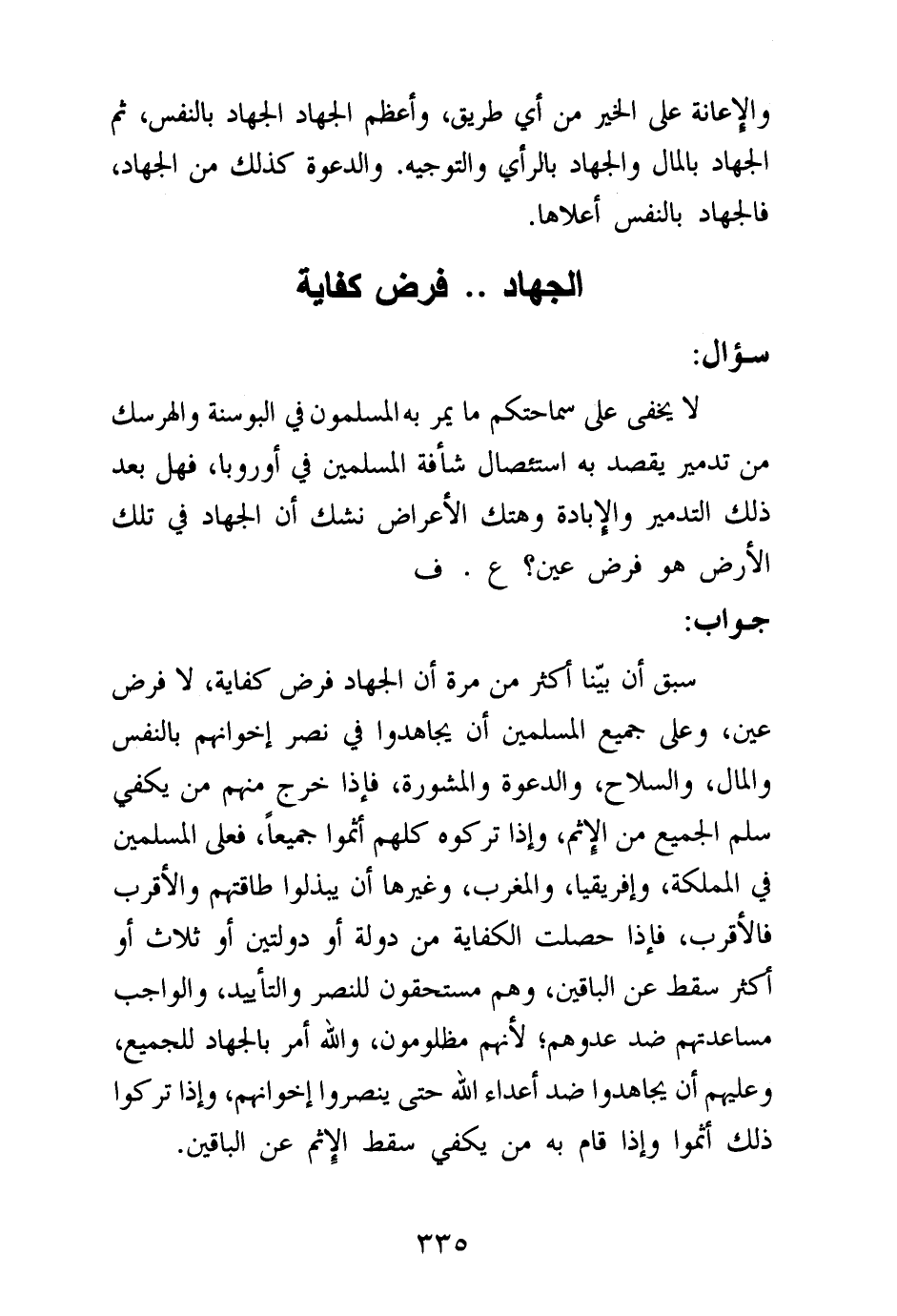 لا يخفى على سماحتكم ما يمر به المسلمون في البوسنة والهرسك من تدمير يقصد به استئصال شأفة المسلمين في أوروبا، فهل بعد ذلك التدمير والإبادة وهتك الأعراض نشك أن الجهاد في تلك الأرض هو فرض عين؟ ع. ف.