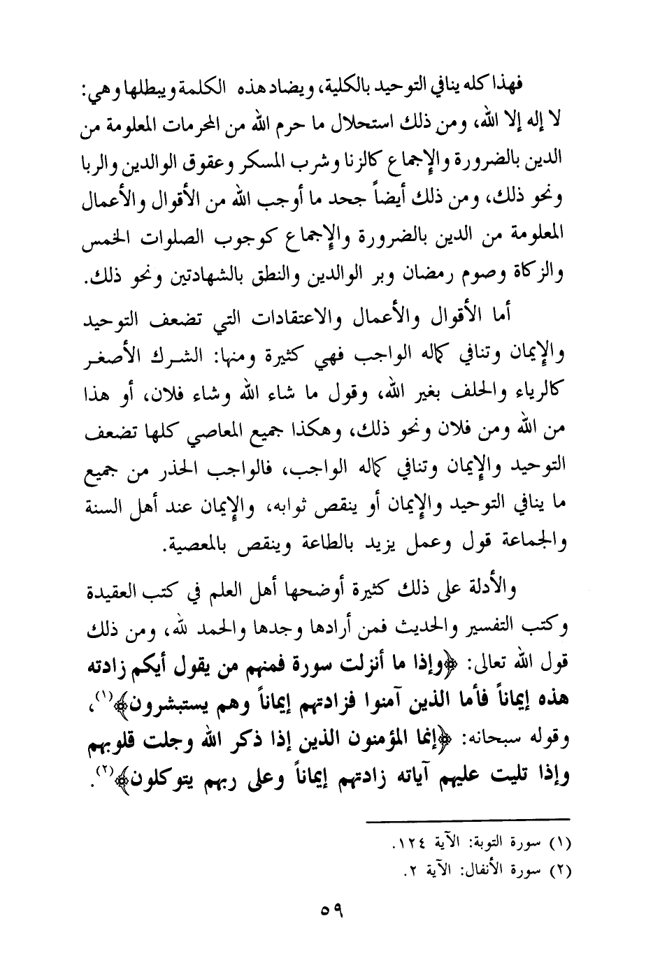 والأدلة على ذلك كثيرة أوضحها أهل العلم في كتب العقيدة وكتب التفسير والحديث فمن أرادها وجدها والحمد لله، ومن ذلك قول الله تعالى: {وَإِذَا مَا أُنْزِلَتْ سُورَةٌ فَمِنْهُمْ مَنْ يَقُولُ أَيُّكُمْ زَادَتْهُ هَذِهِ إِيمَانًا فَأَمَّا الَّذِينَ آمَنُوا فَزَادَتْهُمْ إِيمَانًا وَهُمْ يَسْتَبْشِرُونَ} (¬1) وقوله سبحانه: {إِنَّمَا الْمُؤْمِنُونَ الَّذِينَ إِذَا ذُكِرَ اللَّهُ وَجِلَتْ قُلُوبُهُمْ وَإِذَا تُلِيَتْ عَلَيْهِمْ آيَاتُهُ زَادَتْهُمْ إِيمَانًا وَعَلَى رَبِّهِمْ يَتَوَكَّلُونَ} (¬2)