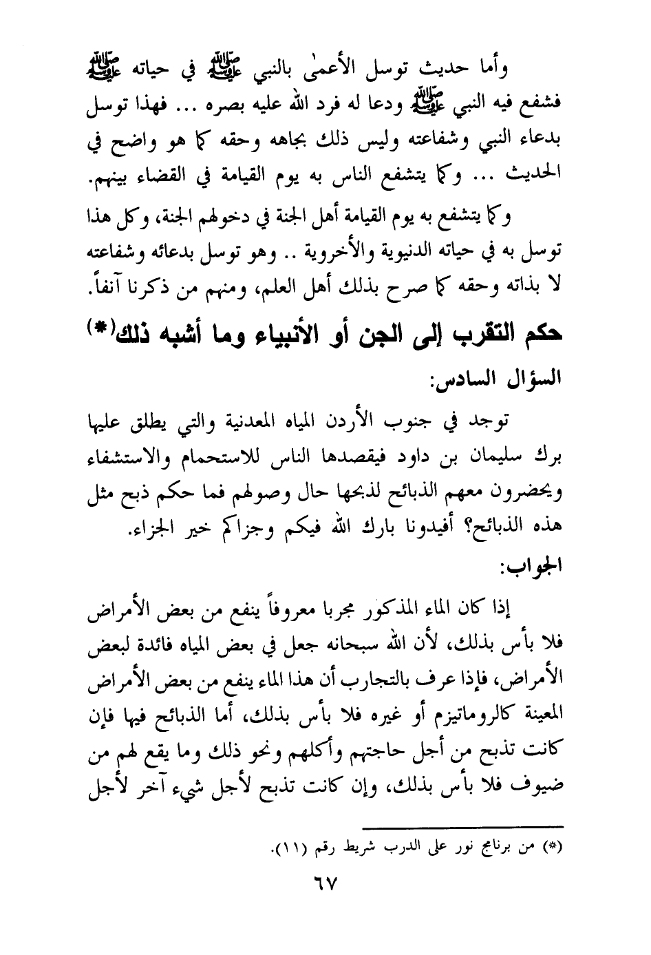 حكم التقرب إلى الجن أو الأنبياء وما أشبه ذلك (¬1)