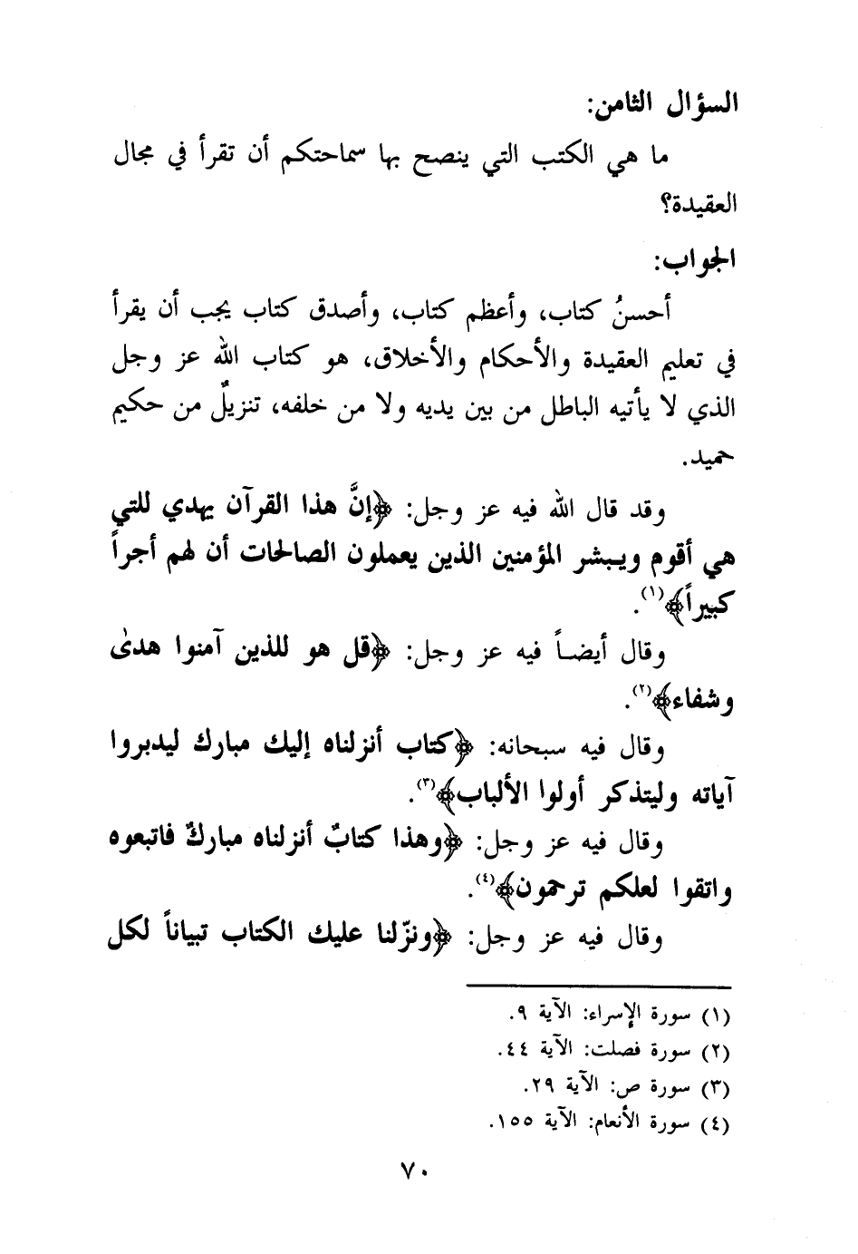 ما هي الكتب التي ينصح بها سماحتكم أن تقرأ في مجال العقيدة؟
