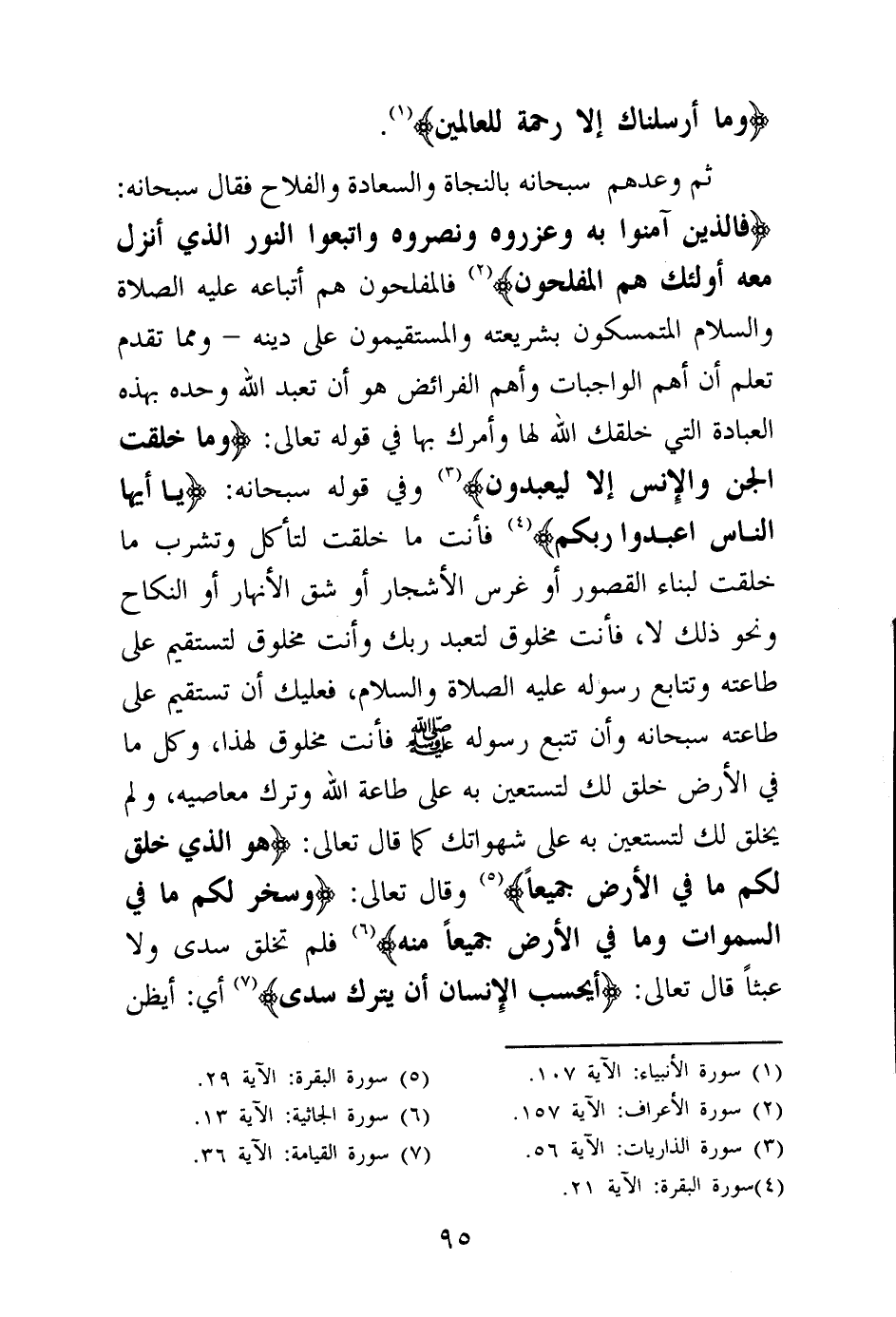 {وَمَا أَرْسَلْنَاكَ إِلَّا رَحْمَةً لِلْعَالَمِينَ} (¬1) ثم وعدهم سبحانه بالنجاة والسعادة والفلاح فقال سبحانه: {فَالَّذِينَ آمَنُوا بِهِ وَعَزَّرُوهُ وَنَصَرُوهُ وَاتَّبَعُوا النُّورَ الَّذِي أُنْزِلَ مَعَهُ أُولَئِكَ هُمُ الْمُفْلِحُونَ} (¬2)