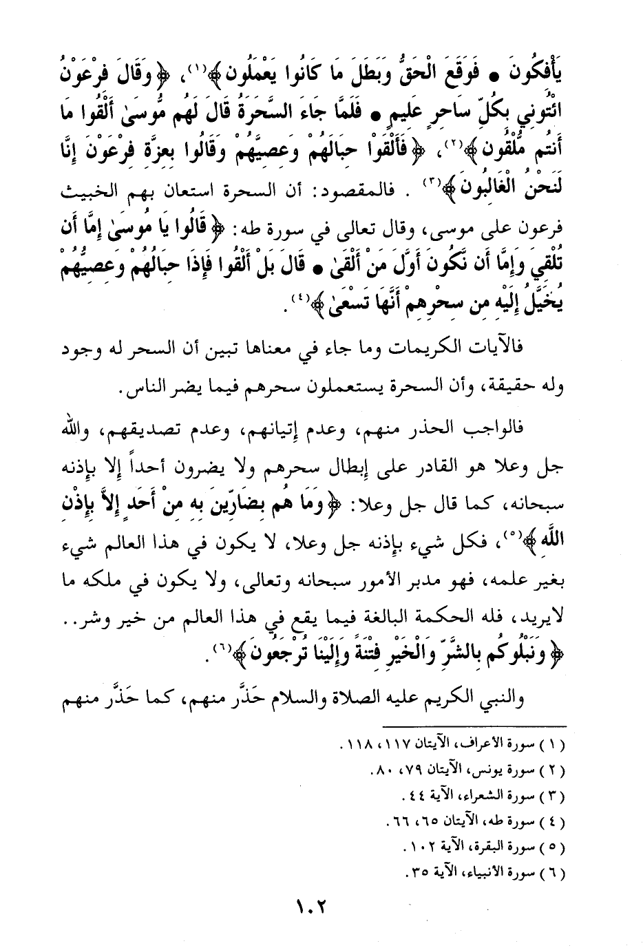 {وَقَالَ فِرْعَوْنُ ائْتُونِي بِكُلِّ سَاحِرٍ عَلِيمٍ} (¬1) {فَلَمَّا جَاءَ السَّحَرَةُ قَالَ لَهُمْ مُوسَى أَلْقُوا مَا أَنْتُمْ مُلْقُونَ} (¬2) {فَأَلْقَوْا حِبَالَهُمْ وَعِصِيَّهُمْ وَقَالُوا بِعِزَّةِ فِرْعَوْنَ إِنَّا لَنَحْنُ الْغَالِبُونَ} (¬3) فالمقصود: أن السحرة استعان بهم الخبيث فرعون على موسى، وقال تعالى في سورة طه: {قَالُوا يَا مُوسَى إِمَّا أَنْ تُلْقِيَ وَإِمَّا أَنْ نَكُونَ أَوَّلَ مَنْ أَلْقَى} (¬4) {قَالَ بَلْ أَلْقُوا فَإِذَا حِبَالُهُمْ وَعِصِيُّهُمْ يُخَيَّلُ إِلَيْهِ مِنْ سِحْرِهِمْ أَنَّهَا تَسْعَى} (¬5)