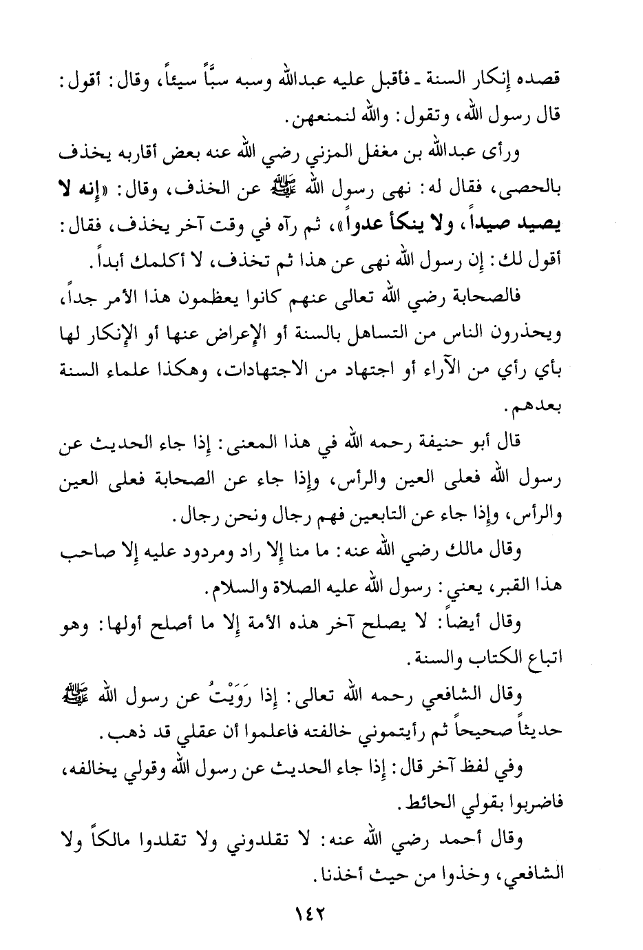 وقال أيضا: لا يصلح آخر هذه الأمة إلا ما أصلح أولها: وهو اتباع الكتاب والسنة.