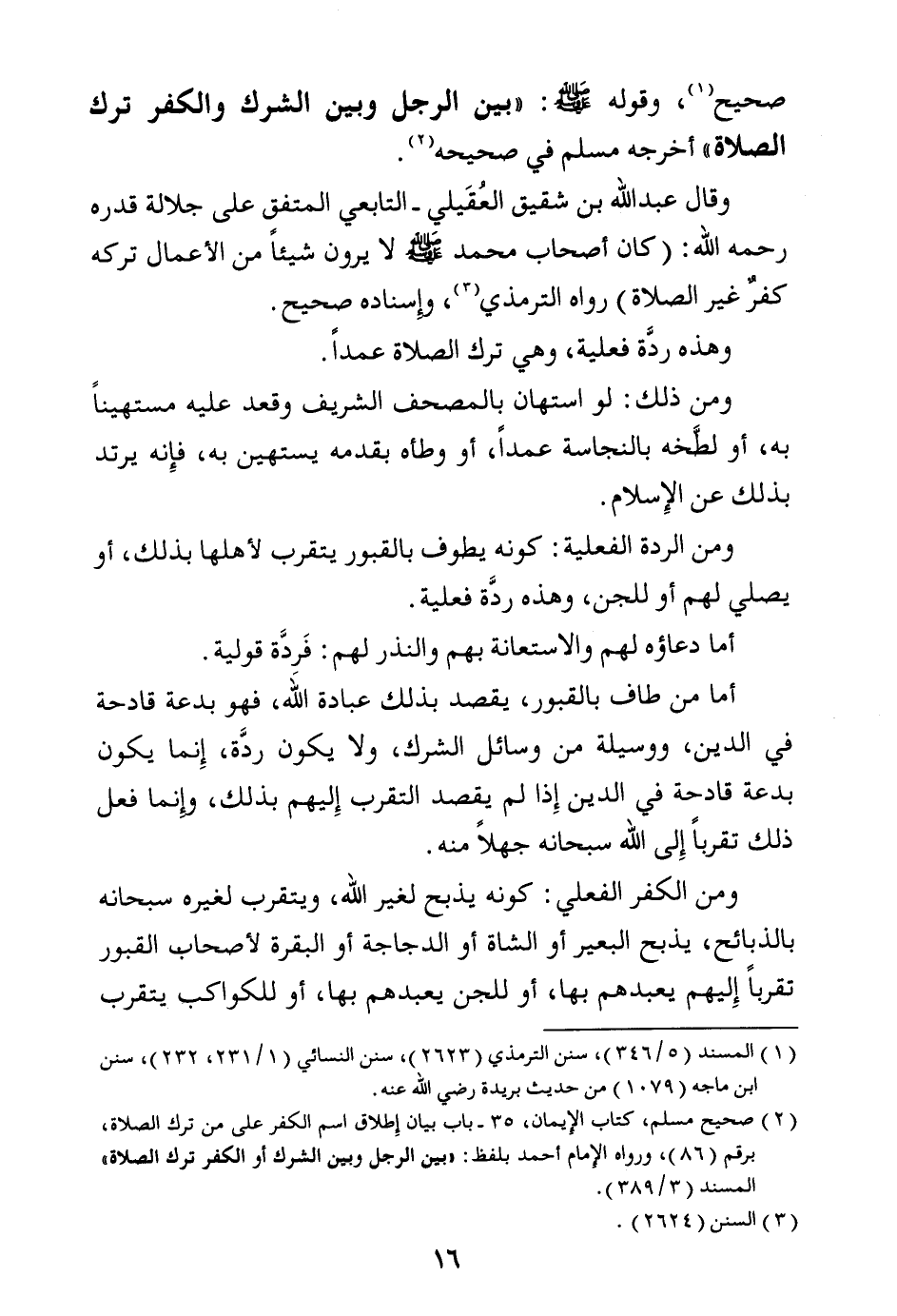 صحيح، وقوله صلى الله عليه وسلم: «بين الرجل وبين الشرك والكفر ترك الصلاة» . أخرجه مسلم في صحيحه.