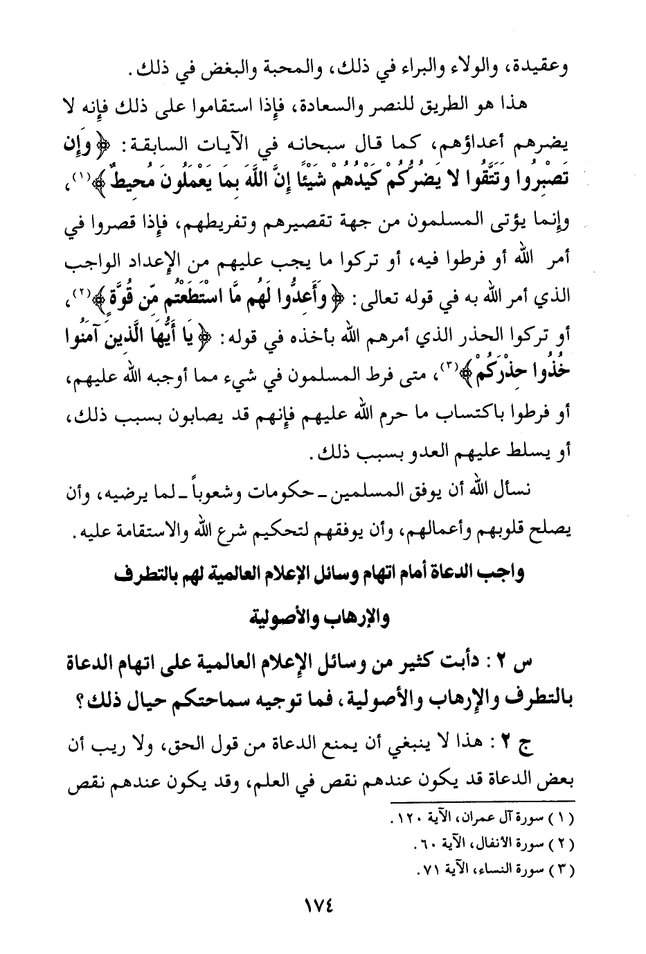 س 2: دأبت كثير من وسائل الإعلام العالمية على اتهام الدعاة بالتطرف والإرهاب والأصولية، فما توجيه سماحتكم حيال ذلك؟ .