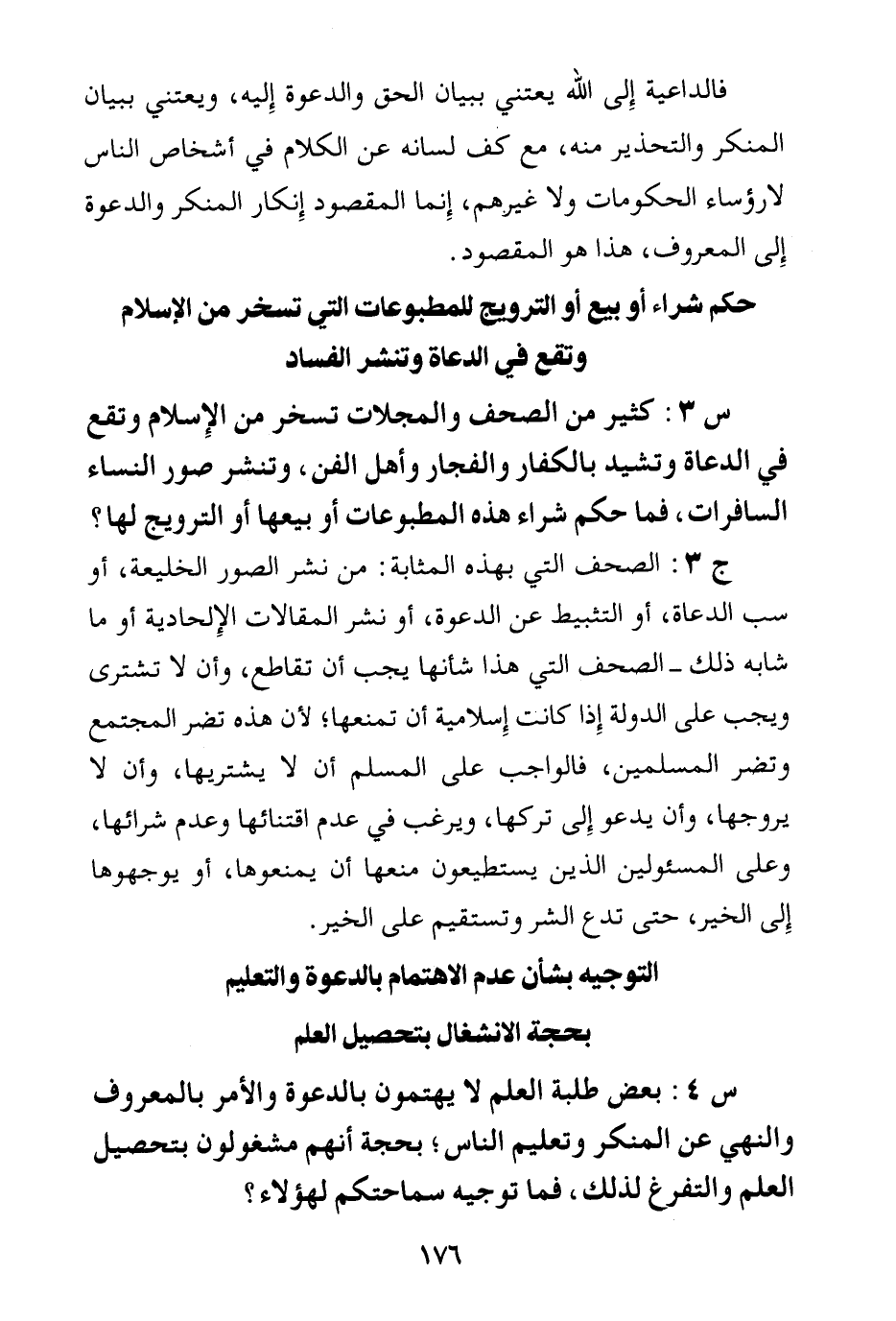 س 4: بعض طلبة العلم لا يهتمون بالدعوة والأمر بالمعروف والنهي عن المنكر وتعليم الناس؛ بحجة أنهم مشغولون بتحصيل العلم والتفرغ لذلك، فما توجيه سماحتكم لهؤلاء؟ .