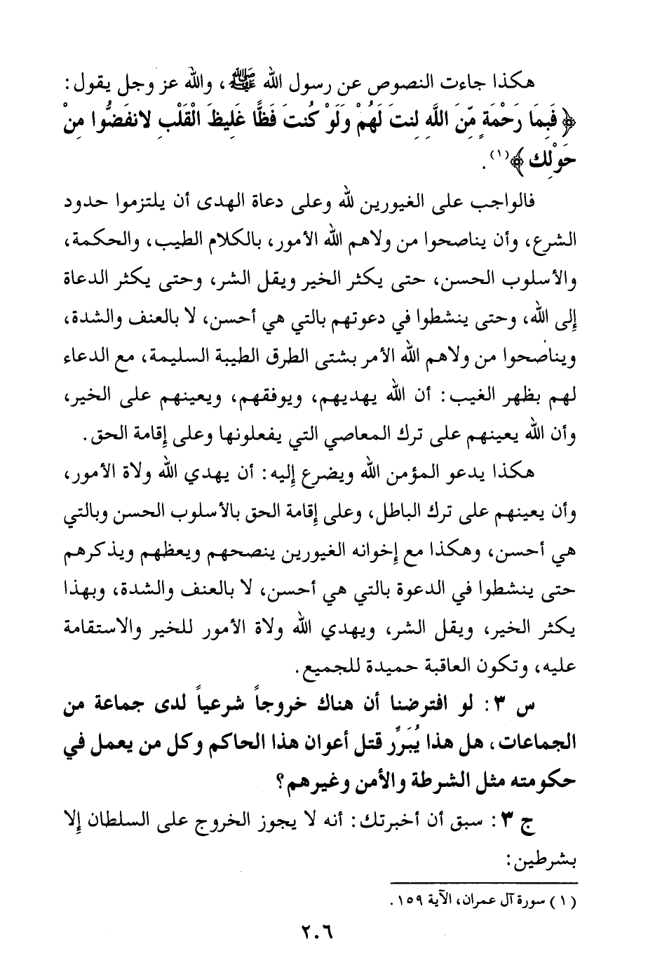 س3: لو افترضنا أن هناك خروجا شرعيا لدى جماعة من الجماعات، هل هذا يبرر قتل أعوان هذا الحاكم وكل من يعمل في حكومته مثل الشرطة والأمن وغيرهم؟ .