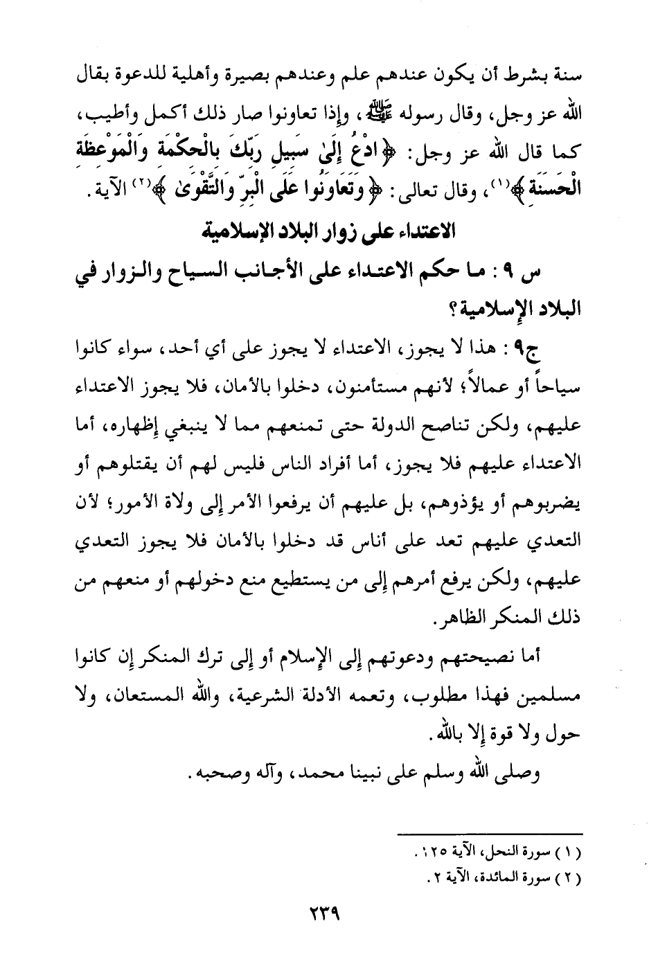 س9: ما حكم الاعتداء على الأجانب السياح والزوار في البلاد الإسلامية؟ .