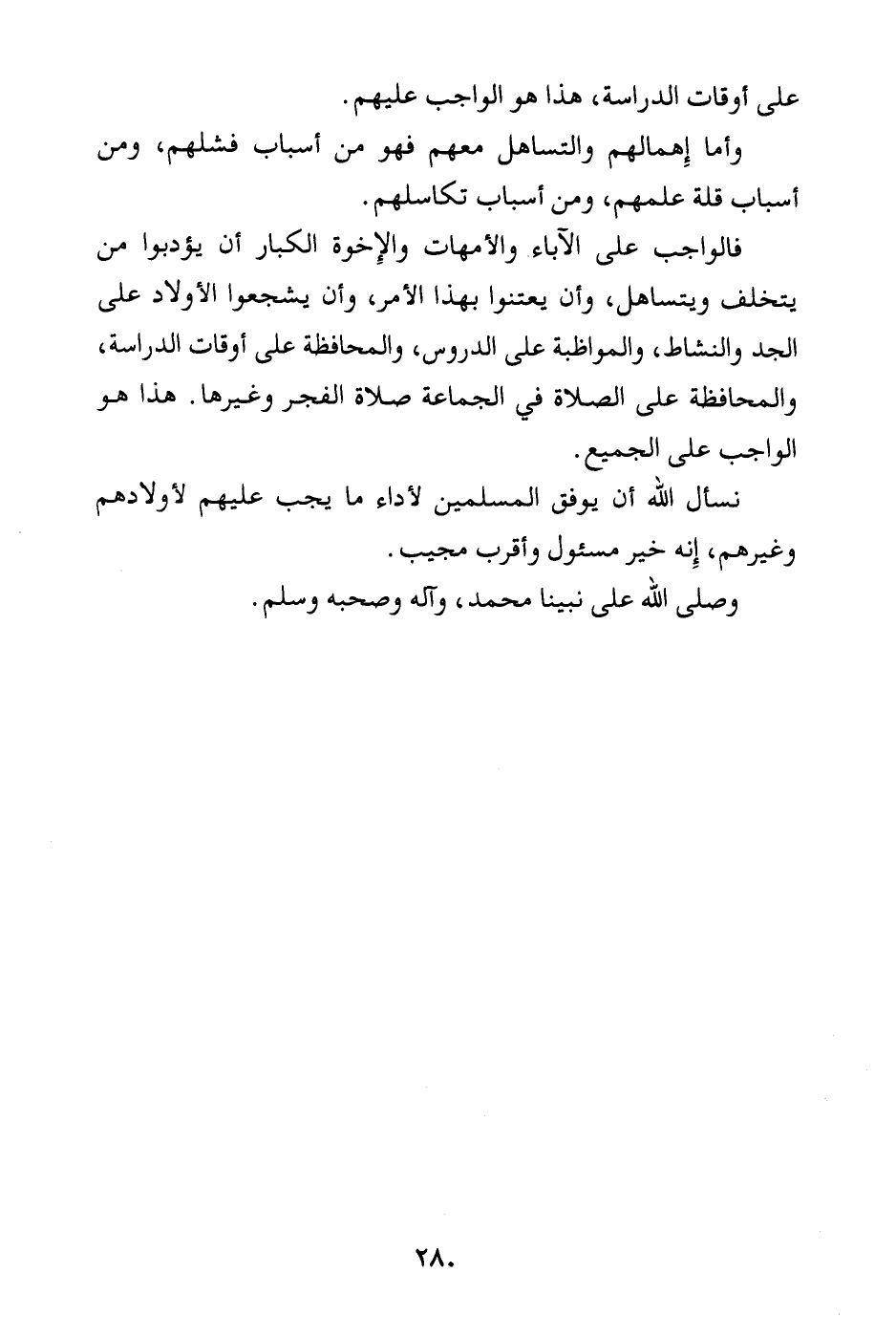 نسأل الله أن يوفق المسلمين لأداء ما يجب عليهم لأولادهم وغيرهم، إنه خير مسئول وأقرب مجيب.