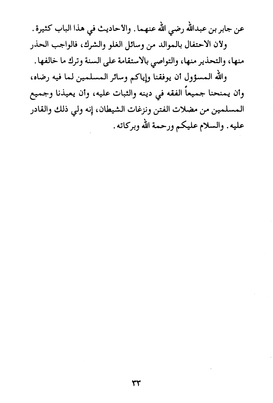 والله المسئول أن يوفقنا وإياكم وسائر المسلمين لما فيه رضاه، وأن يمنحنا جميعا الفقه في دينه والثبات عليه، وأن يعيذنا وجميع المسلمين من مضلات الفتن ونزغات الشيطان، إنه ولي ذلك والقادر عليه. والسلام عليكم ورحمة الله وبركاته.