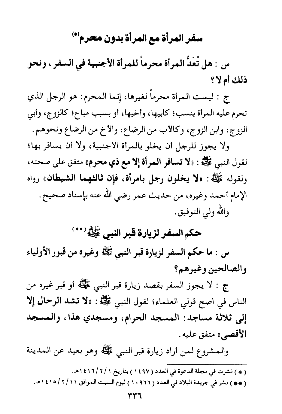 سفر المرأة مع المرأة بدون محرم (¬1)