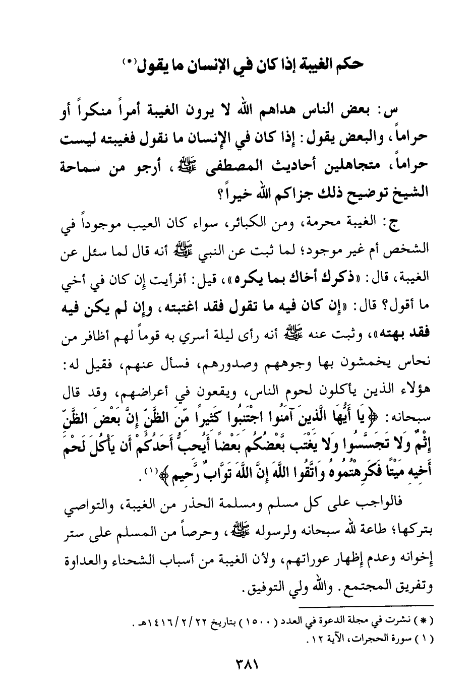 حكم الغيبة إذا كان في الإنسان ما يقول (¬1)
