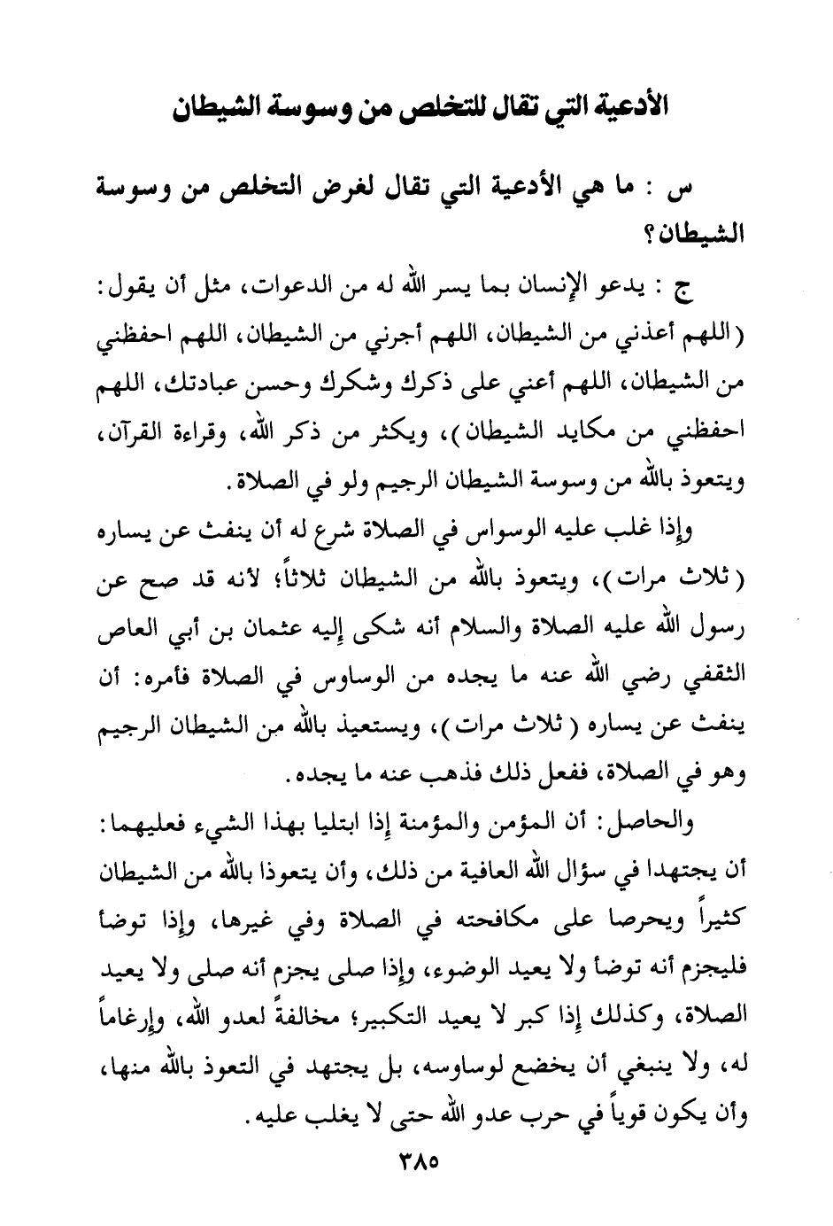 س: ما هي الأدعية التي تقال لغرض التخلص من وسوسة الشيطان؟