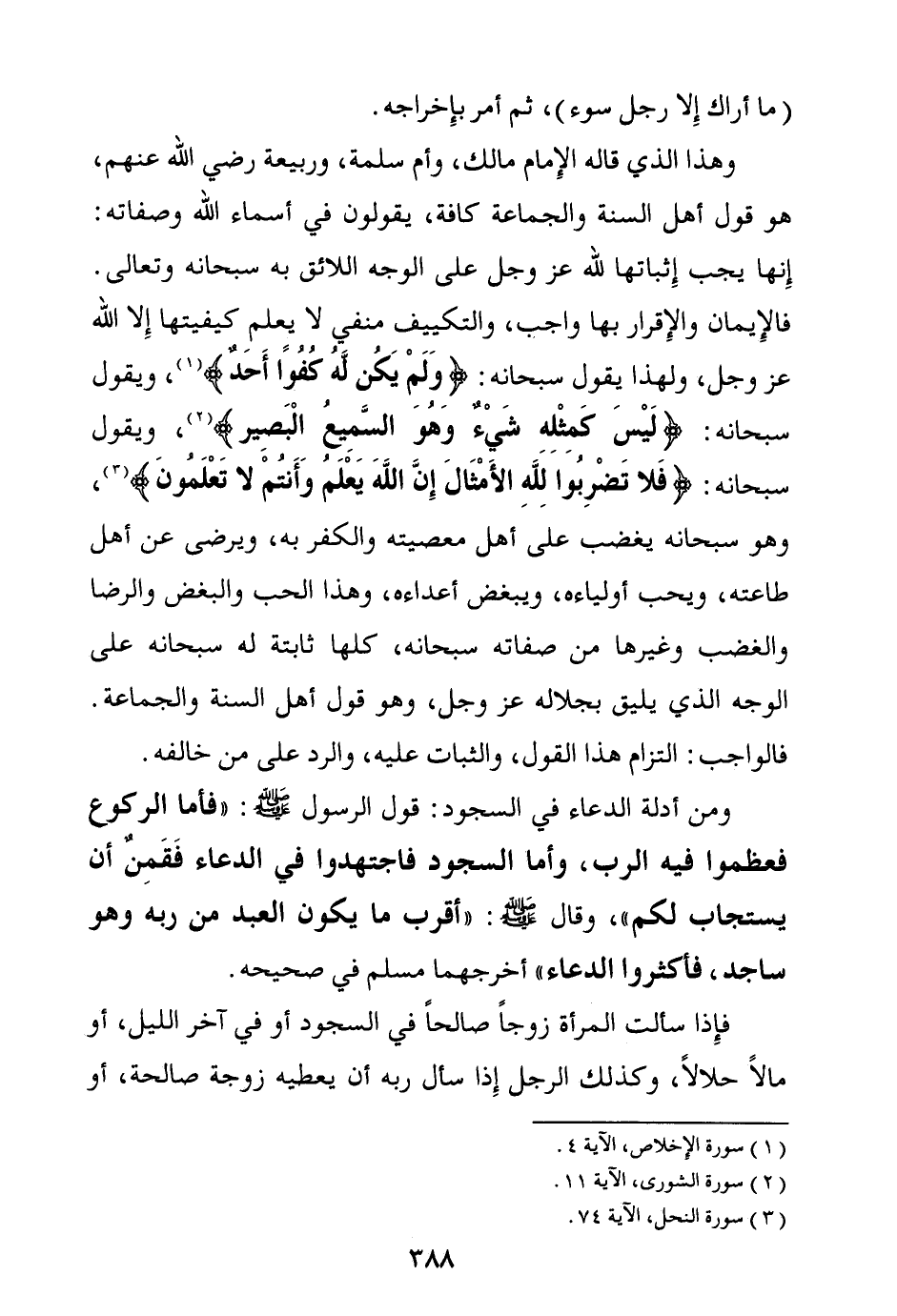 وهذا الذي قاله الإمام مالك، وأم سلمة، وربيعة رضي الله عنهم، هو قول أهل السنة والجماعة كافة، يقولون في أسماء الله وصفاته: إنها يجب إثباتها لله عز وجل على الوجه اللائق به سبحانه وتعالى.