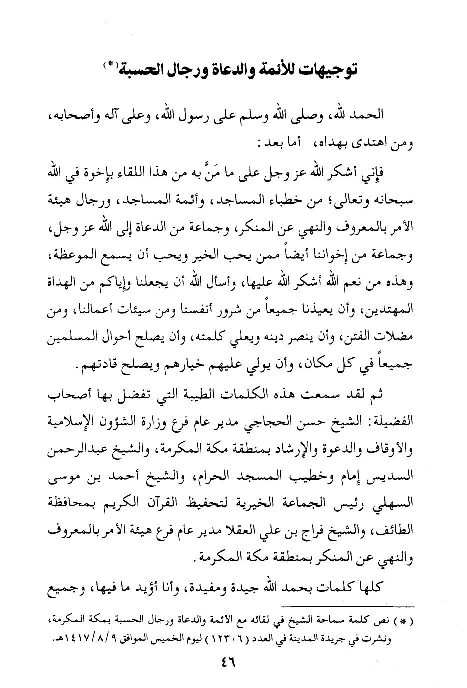 توجيهات للأئمة والدعاة ورجال الحسبة