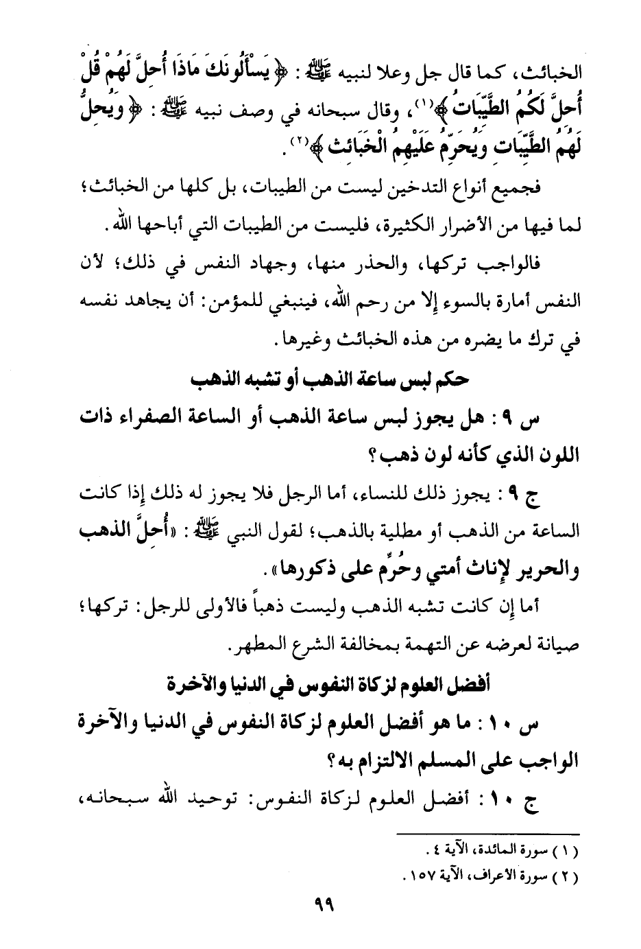 س9: هل يجوز لبس ساعة الذهب أو الساعة الصفراء ذات اللون الذي كأنه لون ذهب؟